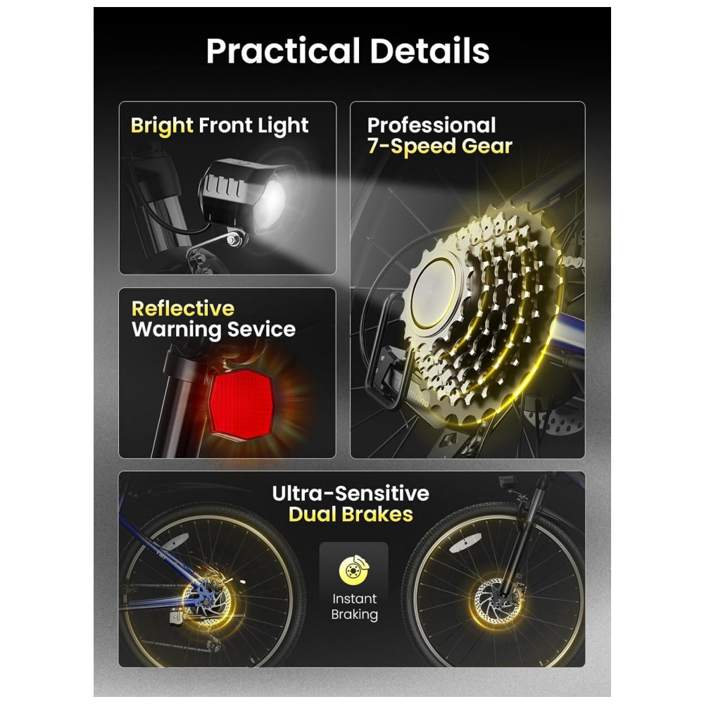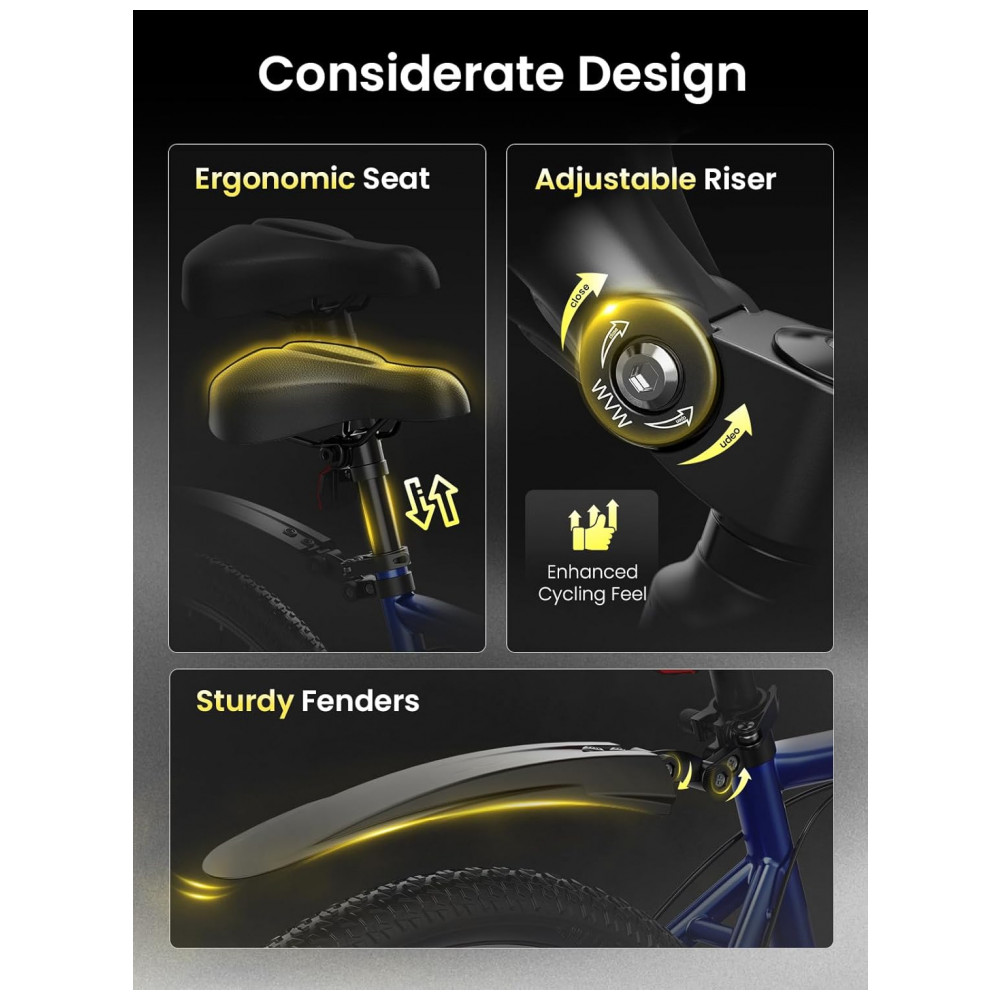 Conteúdo da embalagem: 1 bicicleta elétrica Jasion YM1 azul marinho, 1 kit de ferramentas, 1 manual do usuário
