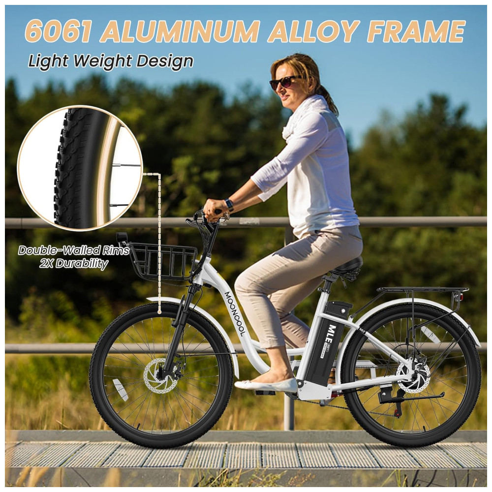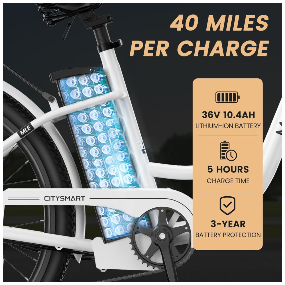 Bateria removível e longo alcance: Equipada com uma bateria removível de 36 V e 10,4 Ah, esta bicicleta elétrica pode percorrer até 64 km com uma única carga completa. O design removível permite fácil carregamento e troca de bateria em qualquer lugar. Perfeita tanto para deslocamentos urbanos quanto para passeios de fim de semana, sem a preocupação de alcance limitado.