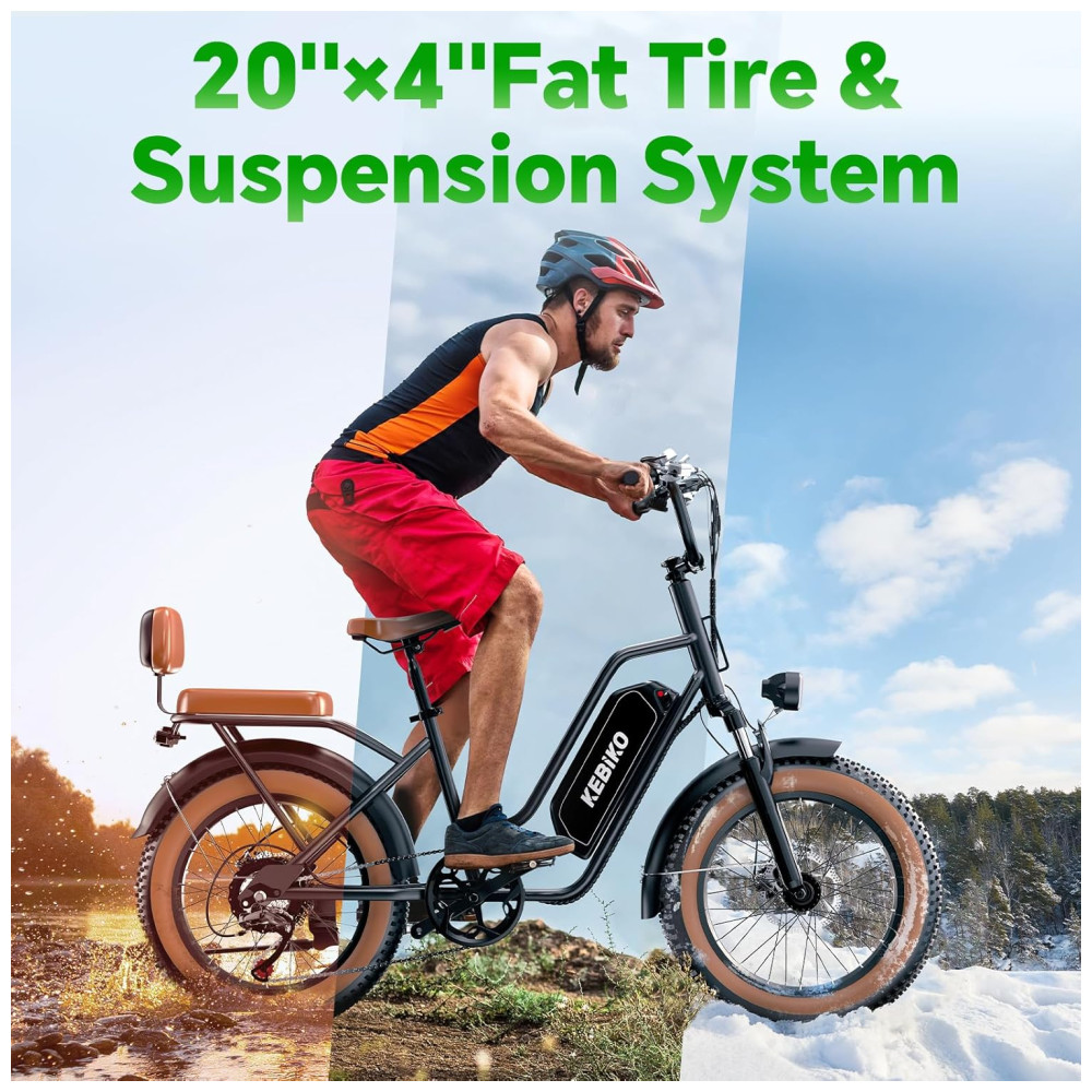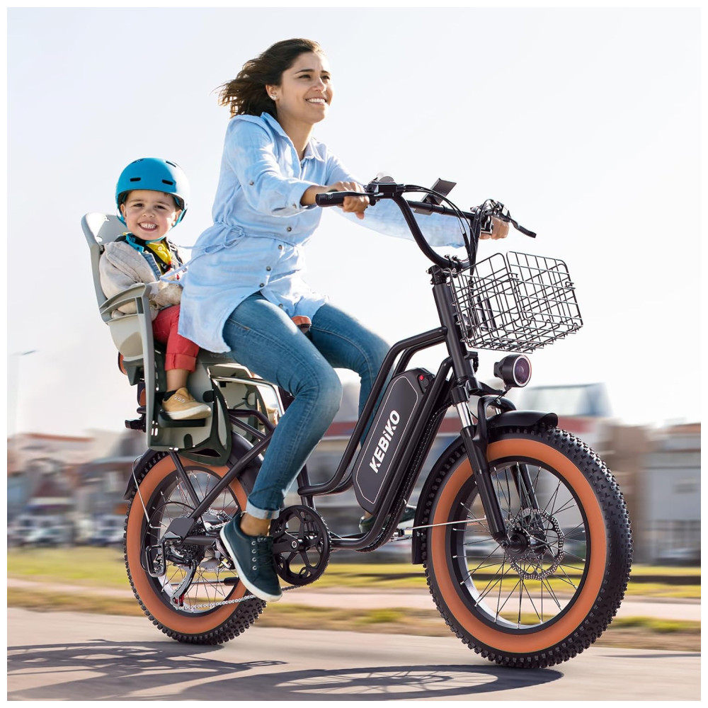 Bicicleta Elétrica para 2 Pessoas Bateria Removível de 48V 20AH Motor de Pico Pneu Gordo de 20″x 4.0″ para Adultos Autonomia de 80 Milhas 30 MPH