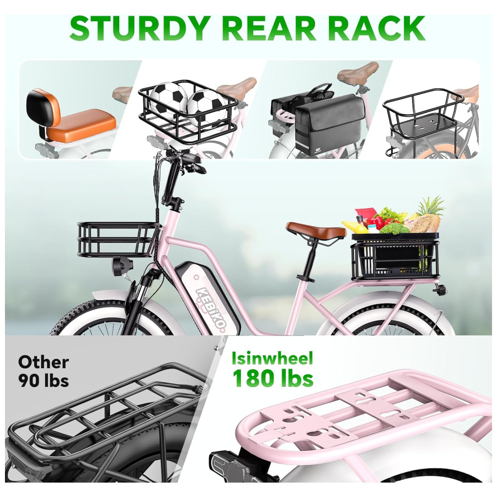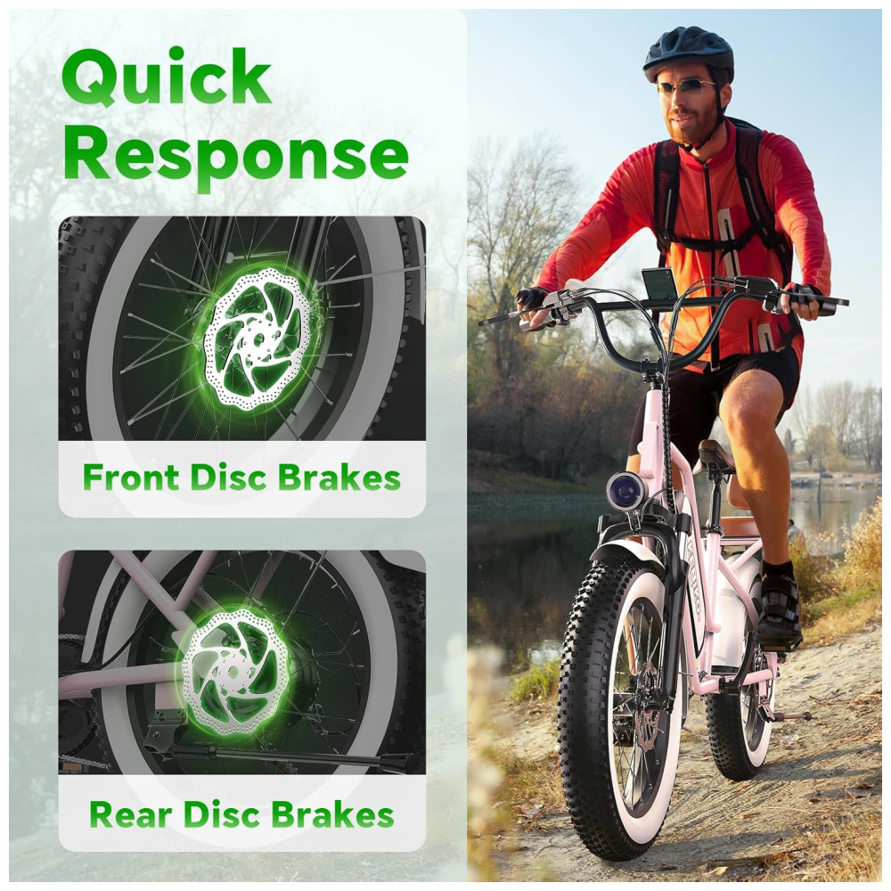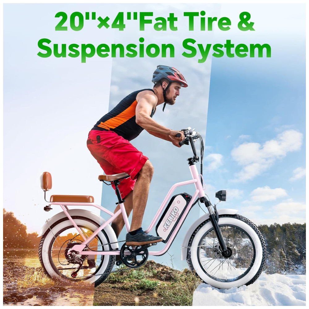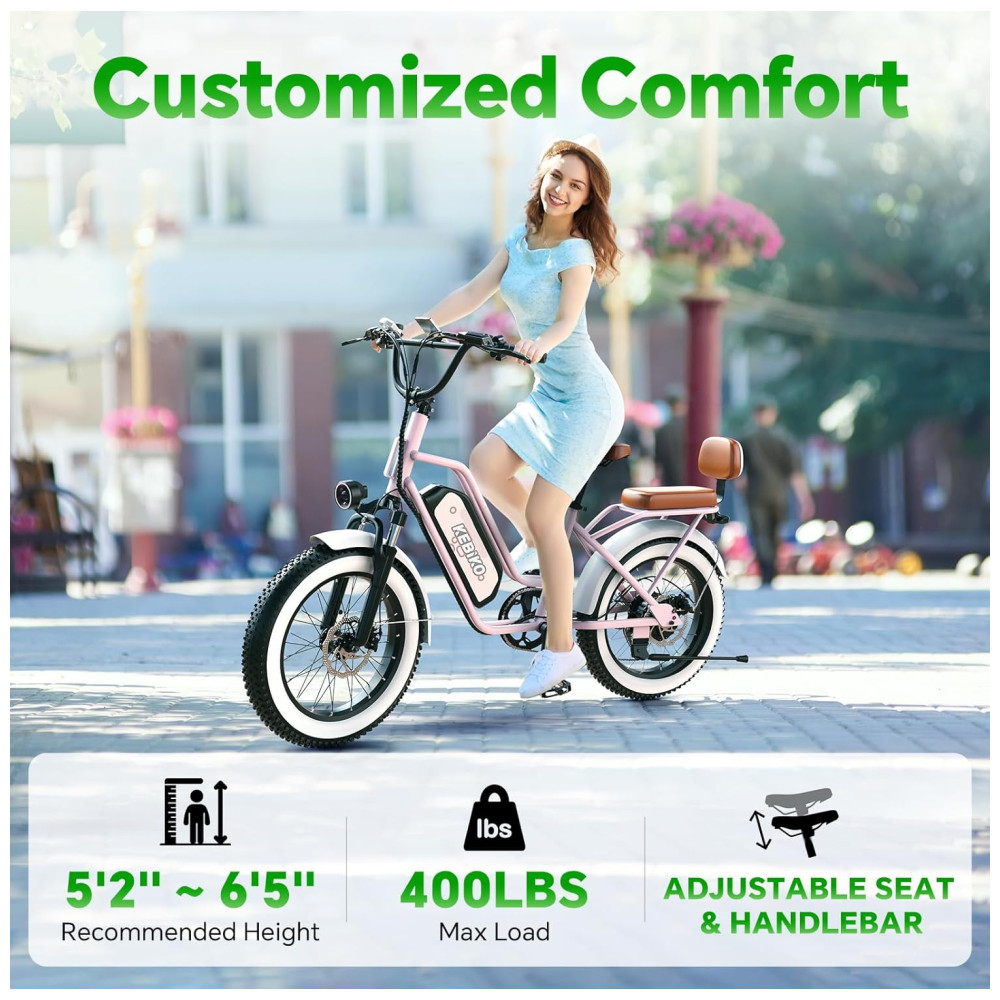 Bicicleta Elétrica para 2 Pessoas Bateria Removível de 48V 20AH Motor Potente Pneu Gordo de 20″x 4.0″ para Adultos Autonomia de 80 Milhas 30 MPH