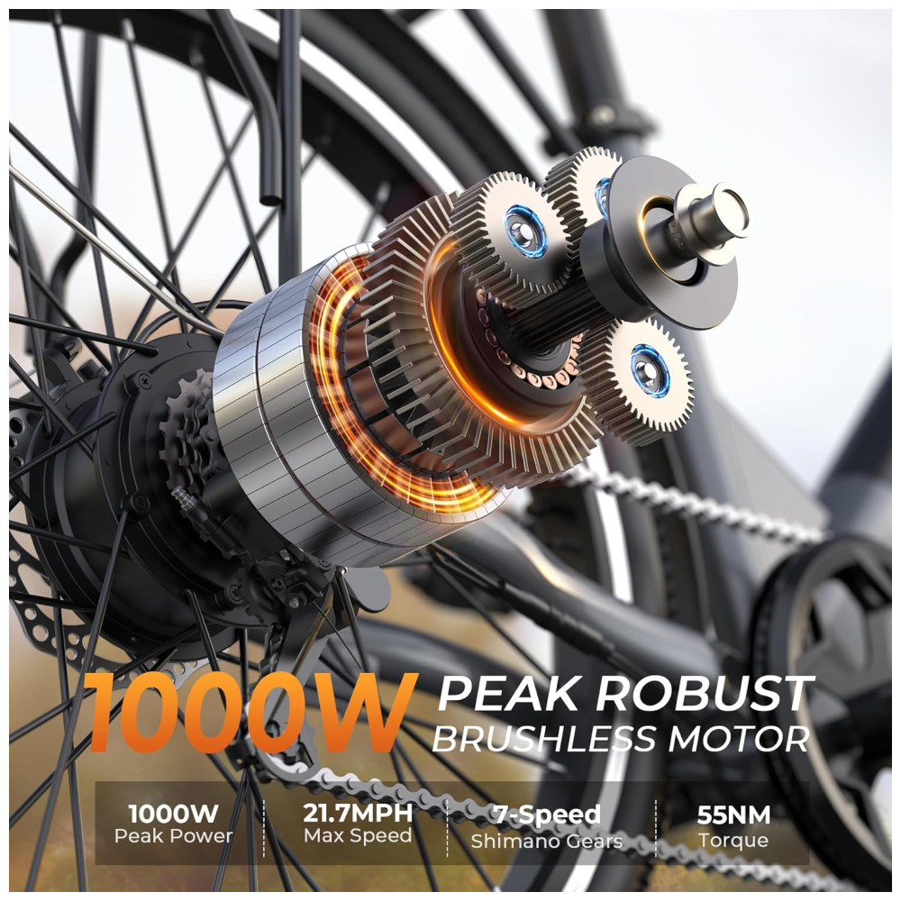 POTENTE MOTOR BRUSHLESS DE PICO DE 1000 W: Com um motor de alto torque de 500 W (pico de 1000 W), a bicicleta elétrica Funhang EB-C2 pode atingir uma velocidade máxima de 35 km/h. O potente motor oferece um torque máximo de 55 N.m para uma aceleração suave e menos ruído. Projetada para o deslocamento diário, exercícios ao ar livre e aventuras de fim de semana, esta bicicleta elétrica para adultos permite que os ciclistas atravessem sem esforço estradas urbanas, estradas arenosas e trilhas off-road.