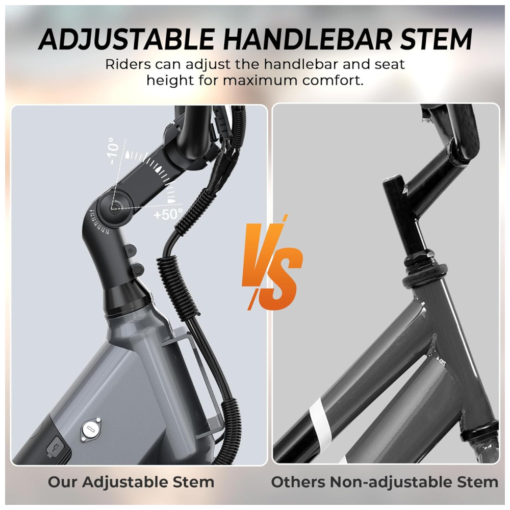 5 MODOS DE FUNCIONAMENTO FLEXÍVEIS: Esta bicicleta elétrica combina 5 modos de funcionamento: Elétrico Puro, Assistência de Pedal, Bicicleta Normal, Cruzeiro e Modo Booster. O modo elétrico puro fornece potência instantânea quando você precisa, enquanto a assistência de pedal oferece uma quantidade moderada de potência enquanto pedala. Para uma experiência de ciclismo clássica, alterne para o modo bicicleta normal. O modo cruzeiro permite manter uma velocidade constante e o modo booster ajuda a impulsionar a bicicleta elétrica com facilidade. Você pode alternar facilmente entre 5 modos de funcionamento para maior flexibilidade.