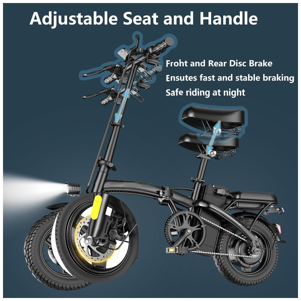 Característica Especial: Bicicleta elétrica para adulto e adolescente, Assistência Elétrica, Freio a Disco Duplo, Assento Ajustável,