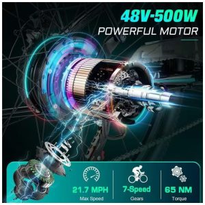 Poderoso motor brushless de 500W Inteligência, eficiência e segurança são seus principais diferenciais entre as ebikes. O motor brushless mais forte da ebike com menor corrente sem carga fornece energia suficiente para sua viagem e experiência diárias. Equipado com um assistente de potência de 3 níveis e marchas SHIMANO 7, sua pilotagem torna se responsiva a qualquer momento e satisfaz todas as suas acelerações.