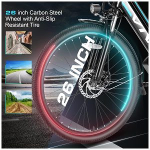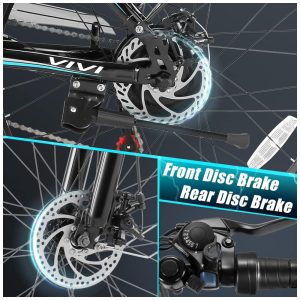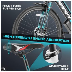 Bicicleta elétrica segura A bicicleta elétrica equipada com garfo de suspensão resistente e confiável pode efetivamente absorver choques durante a condução, pneus antiderrapantes para uma melhor aderência. Excelentes freios a disco dianteiros e traseiros fornecem maior poder de parada, permitindo uma frenagem precisa e instantânea mesmo em tempo úmido. Além disso, faróis dianteiros de LED brilhantes, refletores nas laterais e uma campainha de som mantêm perfeitamente sua segurança