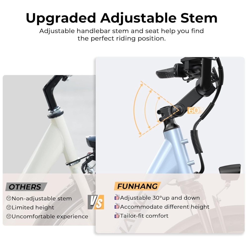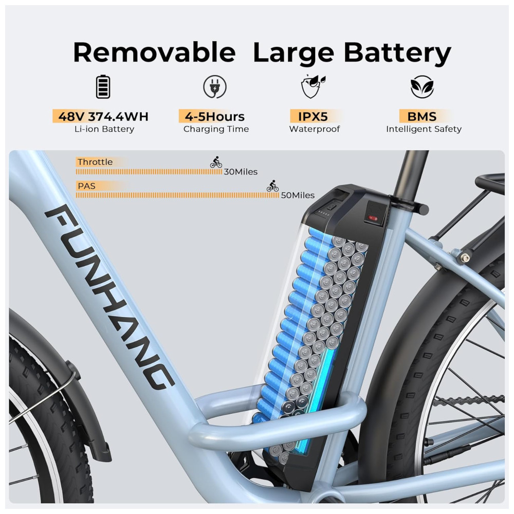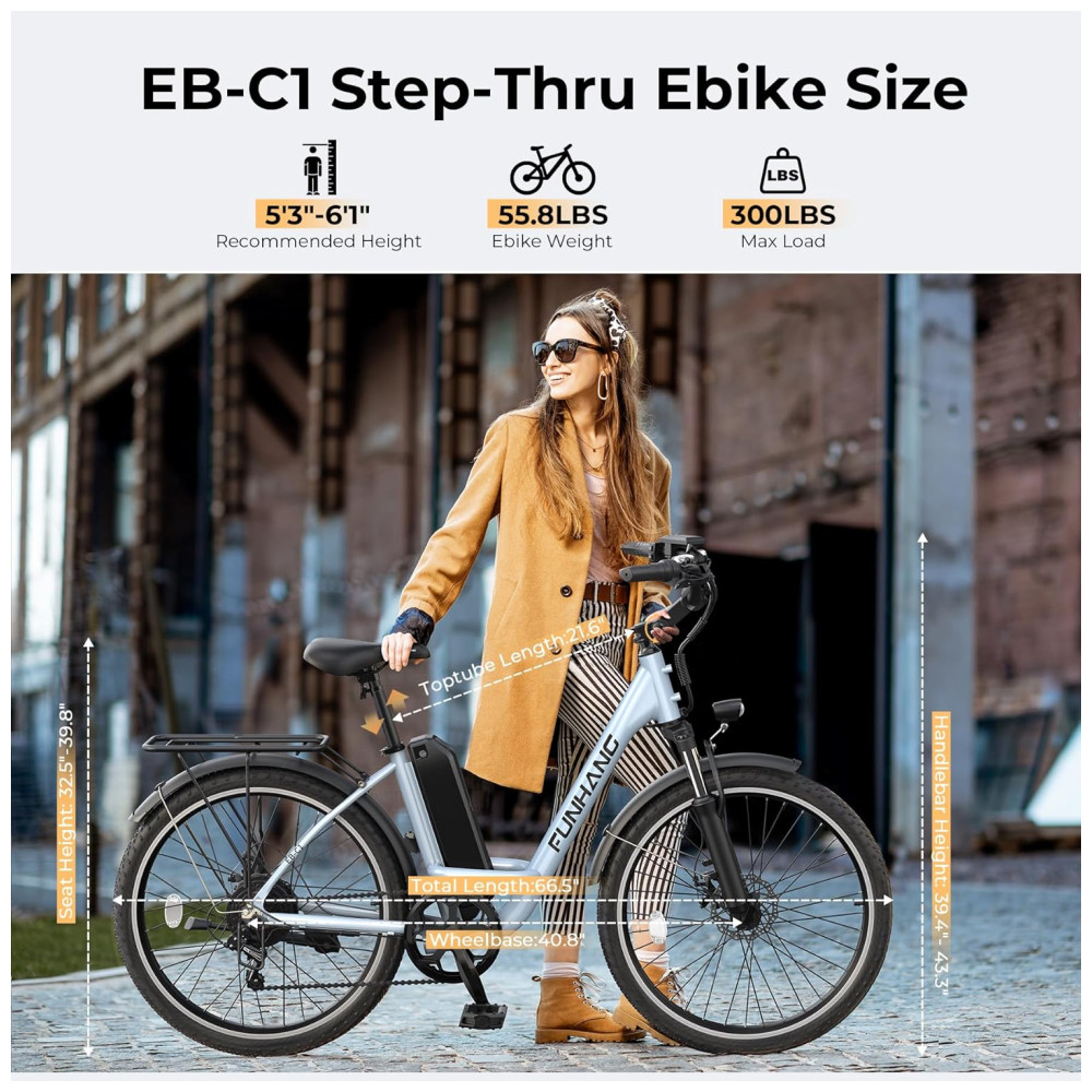MOTOR BRUSHLESS DE PICO DE 1000 W: A bicicleta elétrica Funhang EB-C1 para adultos adota um motor brushless de alta velocidade de 500 W (PICO DE 1000 W), proporcionando uma velocidade máxima de 35 km/h e um torque máximo de 55 N.m. Seja em subidas ou em terrenos planos, esta bicicleta elétrica urbana lida com tudo sem esforço, com ampla potência e desempenho impressionante. É divertido pedalar pelo bairro, cidade, trilhas de parques, ruas da cidade, campus, praias e áreas de camping.