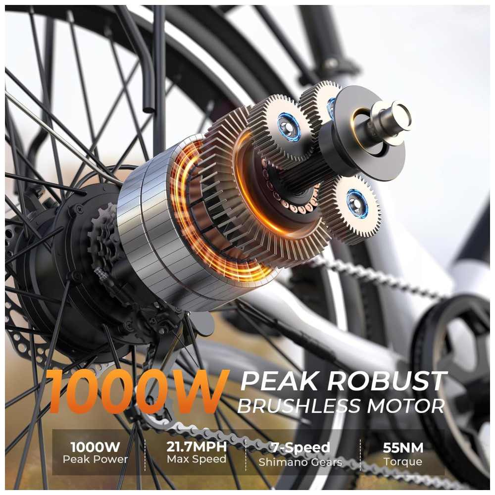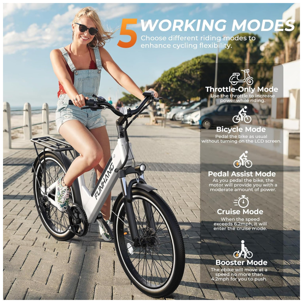 5 MODOS DE FUNCIONAMENTO FLEXÍVEIS: Esta bicicleta elétrica combina 5 modos de funcionamento: Elétrico Puro, Assistência de Pedal, Bicicleta Normal, Cruzeiro e Modo Booster. O modo elétrico puro fornece potência instantânea quando você precisa, enquanto a assistência de pedal oferece uma quantidade moderada de potência enquanto pedala. Para uma experiência de ciclismo clássica, alterne para o modo bicicleta normal. O modo cruzeiro permite manter uma velocidade constante e o modo booster ajuda a impulsionar a bicicleta elétrica com facilidade. Você pode alternar facilmente entre 5 modos de funcionamento para maior flexibilidade.