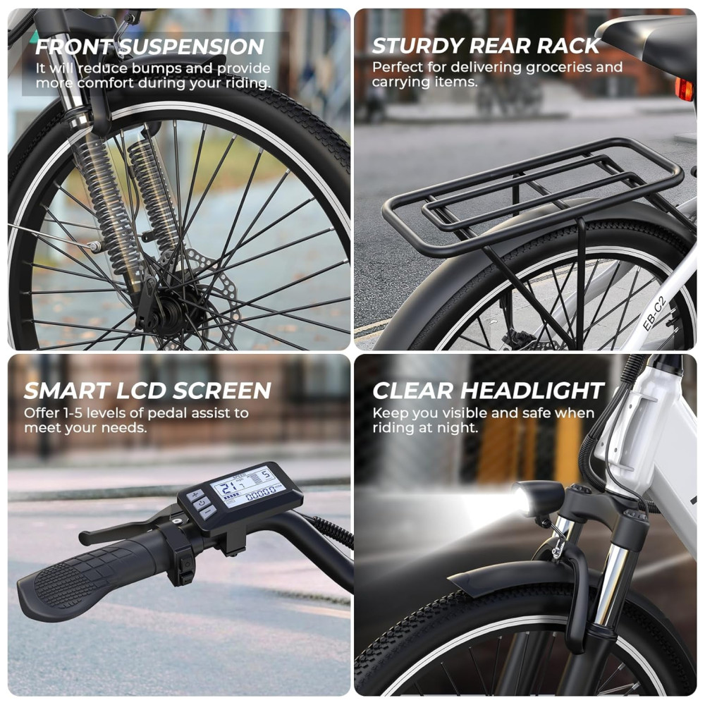 85% PRÉ-MONTAGEM E GARANTIA DE 12 MESES: A bicicleta elétrica Funhang EB-C2 é 85% pré-montada. Você pode consultar o vídeo de montagem e o manual do usuário para concluir facilmente o restante da montagem e iniciar sua jornada de pedalada. A bicicleta elétrica Funhang Step-Through também vem com garantia de 12 meses e suporte técnico vitalício. Se você tiver algum problema ao usar esta bicicleta elétrica, não hesite em entrar em contato conosco. Responderemos em até 24 horas. Observação: encha os pneus a 40-45 PSI antes de andar.