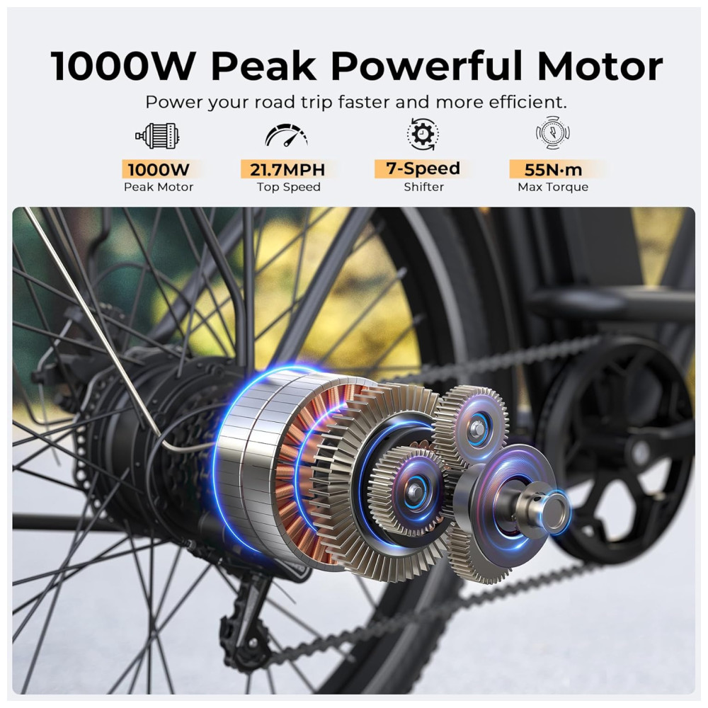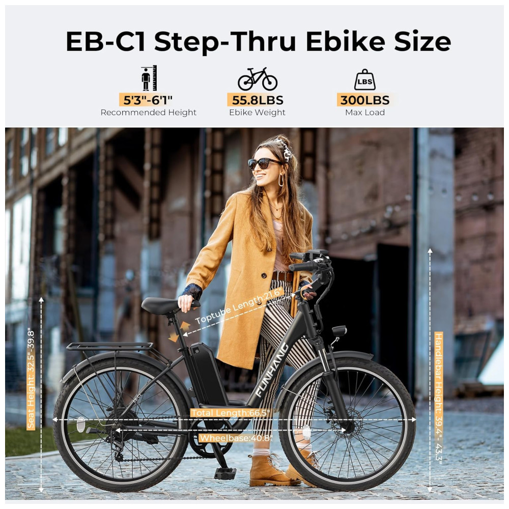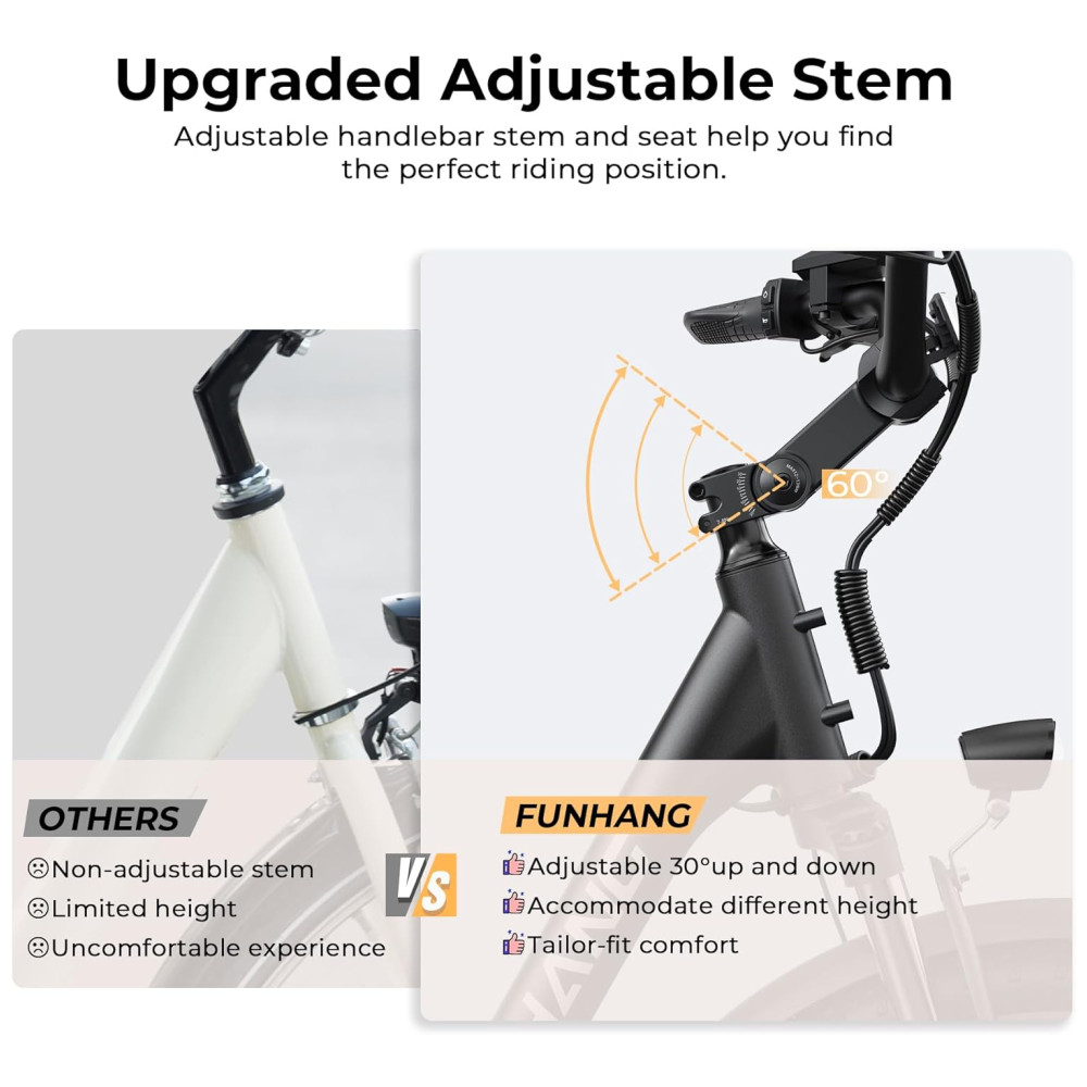 MOTOR BRUSHLESS DE PICO DE 1000 W: A bicicleta elétrica Funhang EB-C1 para adultos adota um motor brushless de alta velocidade de 500 W (PICO DE 1000 W), proporcionando uma velocidade máxima de 35 km/h e um torque máximo de 55 N.m. Seja em subidas ou em terrenos planos, esta bicicleta elétrica urbana lida com tudo sem esforço, com ampla potência e desempenho impressionante. É divertido pedalar pelo bairro, cidade, trilhas de parques, ruas da cidade, campus, praias e áreas de camping.