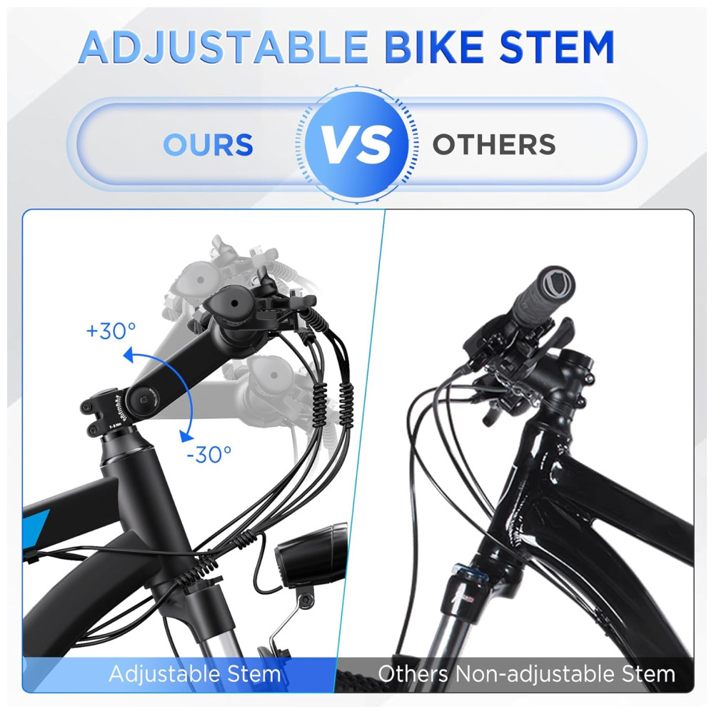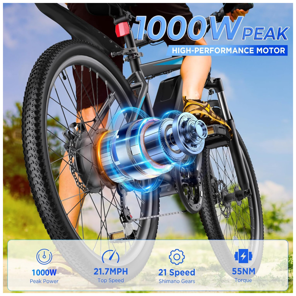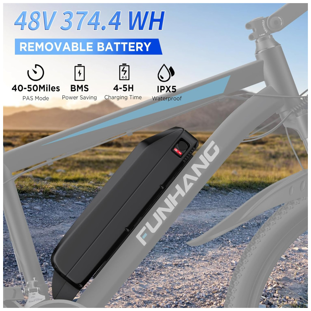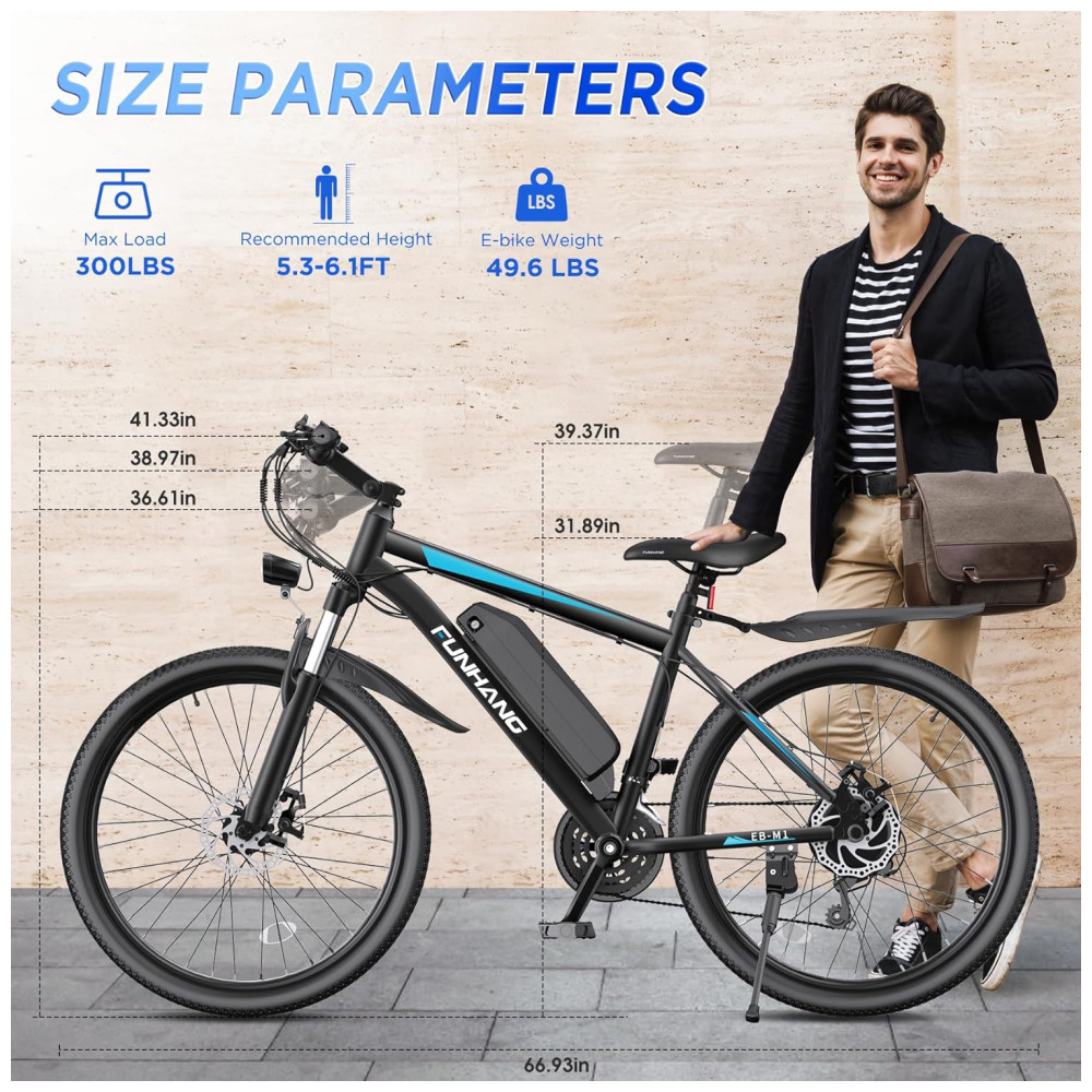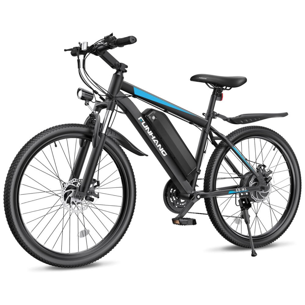 Bicicleta Elétrica Funhang MTB 500W (Pico 1000W) | 26″ Rodas 21 Velocidades Bateria IPX5 48V 3744Wh Tela LCD e Freios a Disco Duplo Azul e preta