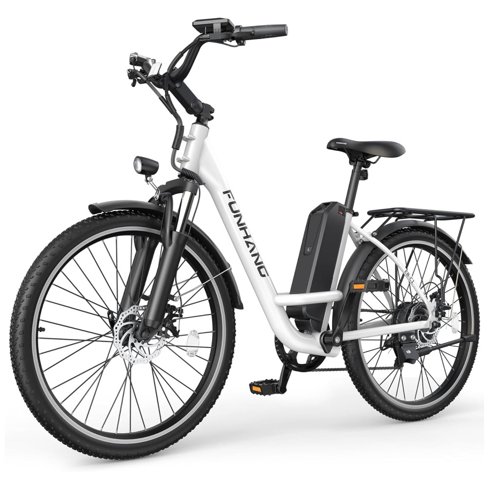Bicicleta Elétrica Funhang EB-C1 1000W com Bateria Removível 48V 7 Velocidades e Tela LCD para Deslocamento Diário BRANCA