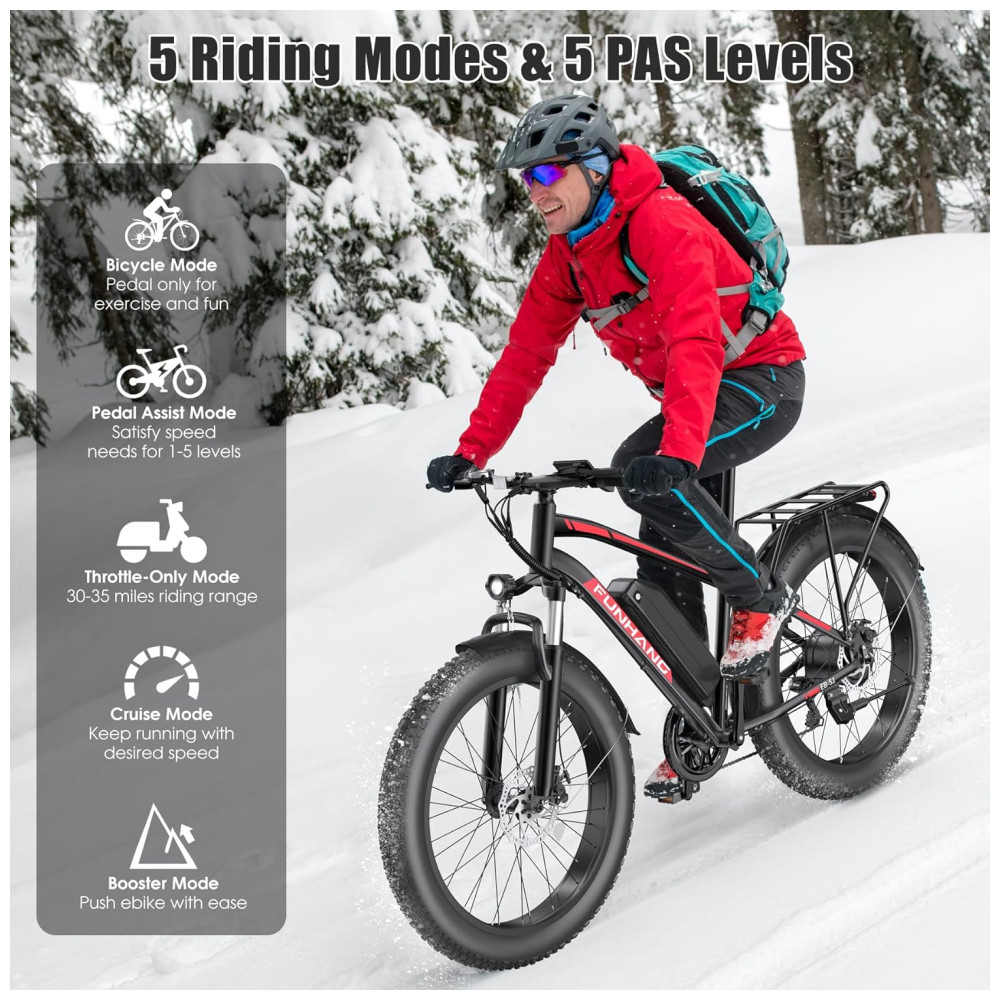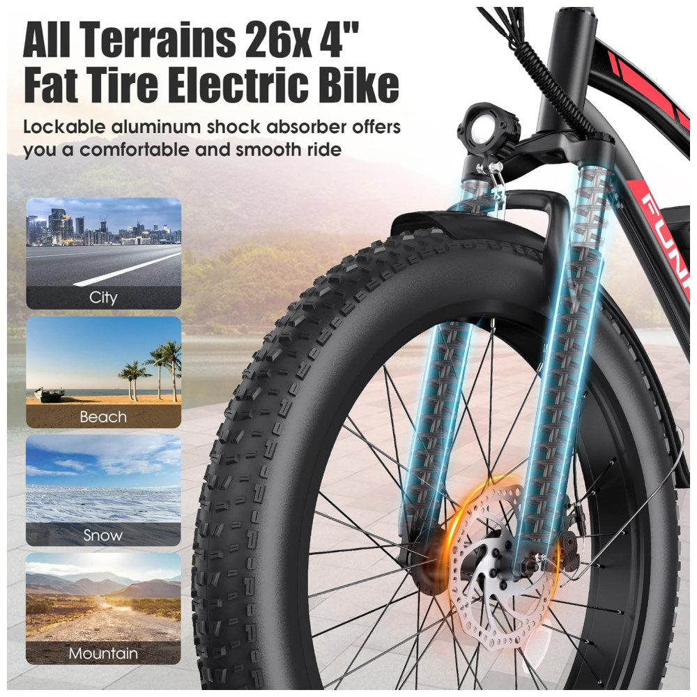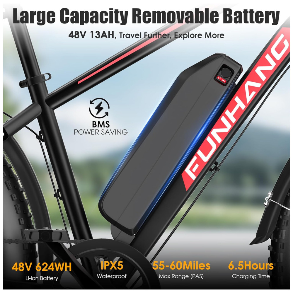 Bicicleta Elétrica Dobrável Funhang EB-S1 26″ | Motor 1000W Bateria 48V 13Ah Removível 7 Velocidades 5 Modos de Condução