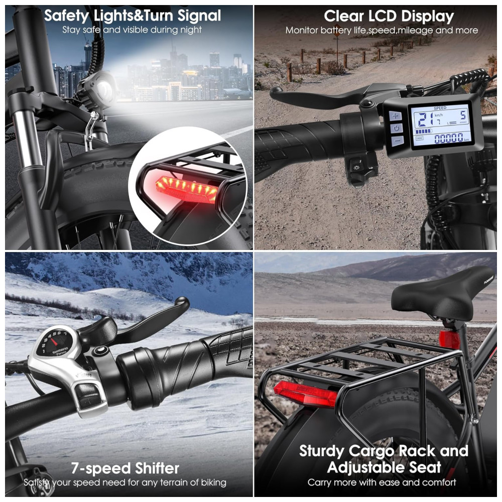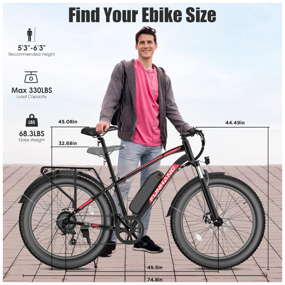 A bicicleta elétrica Funhang EB-S1 de pneus largos é ideal para adultos que buscam aventuras emocionantes. Seu potente motor sem escovas de 1000W proporciona velocidades de até 25MPH, facilitando subidas e trilhas off-road. Com bateria de lítio removível de 48V 13AH, pode percorrer até 60 milhas com assistência total ou 30 milhas no modo elétrico puro. Equipada com suspensão frontal e freios a disco duplos, oferece segurança e conforto. Os 5 modos de pilotagem permitem uma experiência personalizada, enquanto o bagageiro traseiro resistente e os pneus largos garantem praticidade e aderência em diversos terrenos. A bicicleta conta ainda com luzes LED, sinalização de viragem, display LCD e assento ajustável. Prepare-se para pedalar pela cidade, montanha e praias com estilo e performance.
