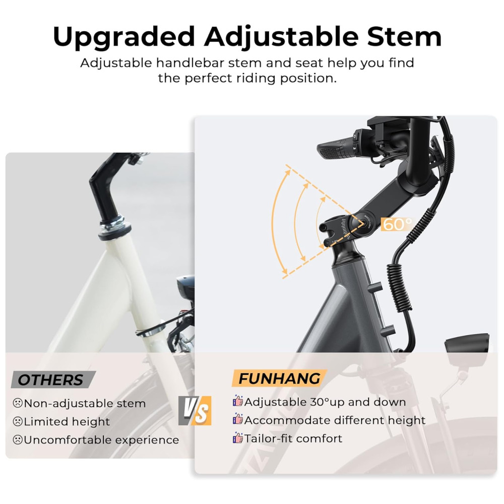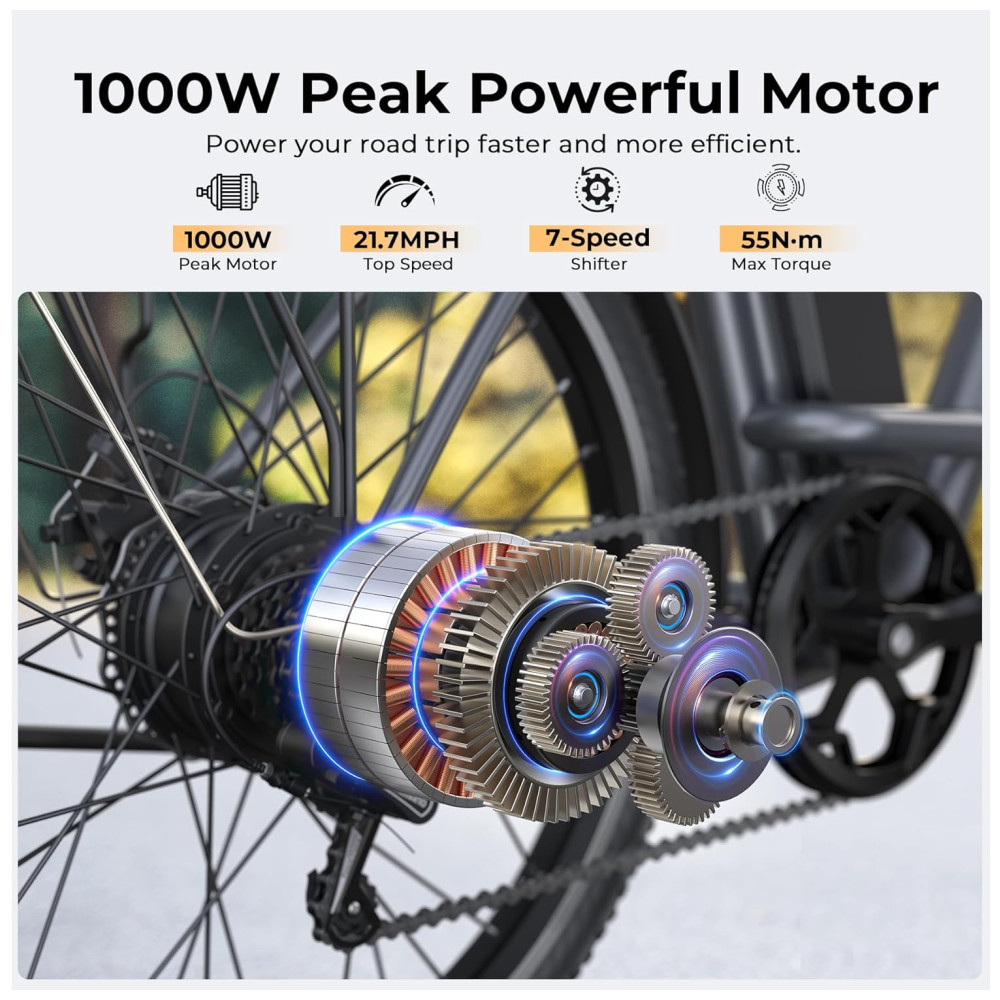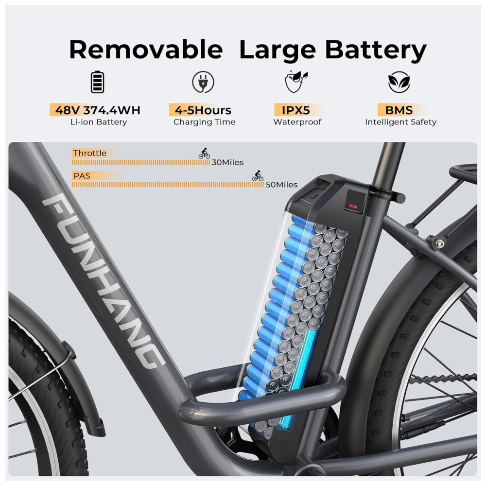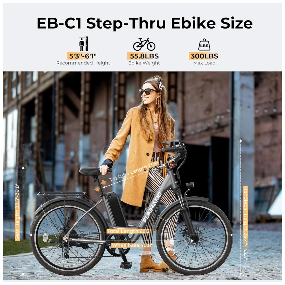 MOTOR BRUSHLESS DE PICO DE 1000 W: A bicicleta elétrica Funhang EB-C1 para adultos adota um motor brushless de alta velocidade de 500 W (PICO DE 1000 W), proporcionando uma velocidade máxima de 35 km/h e um torque máximo de 55 N.m. Seja em subidas ou em terrenos planos, esta bicicleta elétrica urbana lida com tudo sem esforço, com ampla potência e desempenho impressionante. É divertido pedalar pelo bairro, cidade, trilhas de parques, ruas da cidade, campus, praias e áreas de camping.