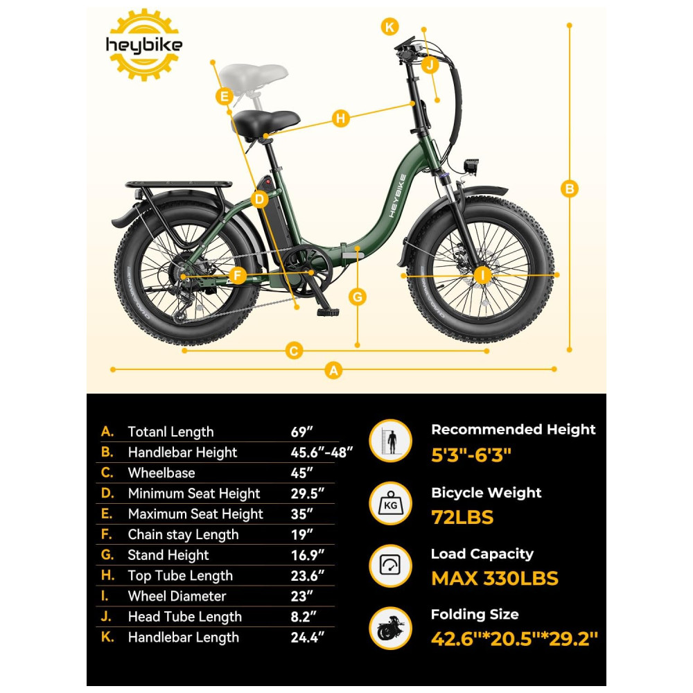 Segurança e Portabilidade – As luzes dianteiras e traseiras integradas desta bicicleta elétrica melhoram a visibilidade noturna, garantindo viagens mais seguras. O quadro dobrável (tamanho dobrado: 107 cm x 52 cm x 74 cm) simplifica o armazenamento e o transporte, tornando-a perfeita para deslocamentos urbanos e viagens em trailers.
