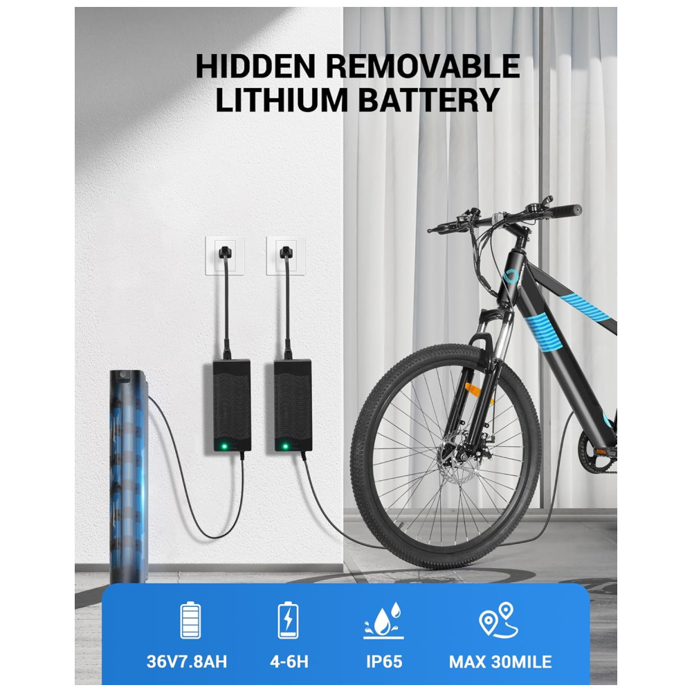 Bicicleta Elétrica para Adultos MULTIJOY Bateria Removível Integrada Invisível de 36V Motor sem Escovas de 350W Pico 450W Bicicleta Elétrica de Mon