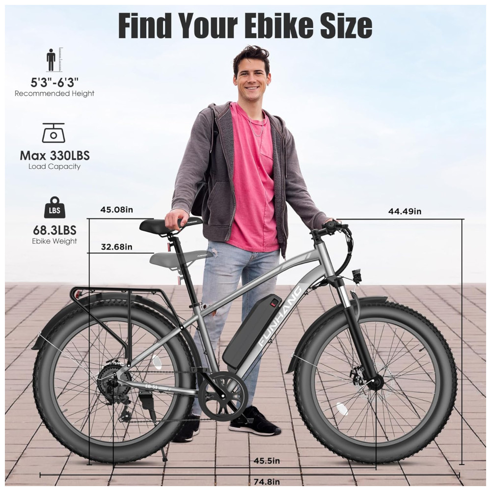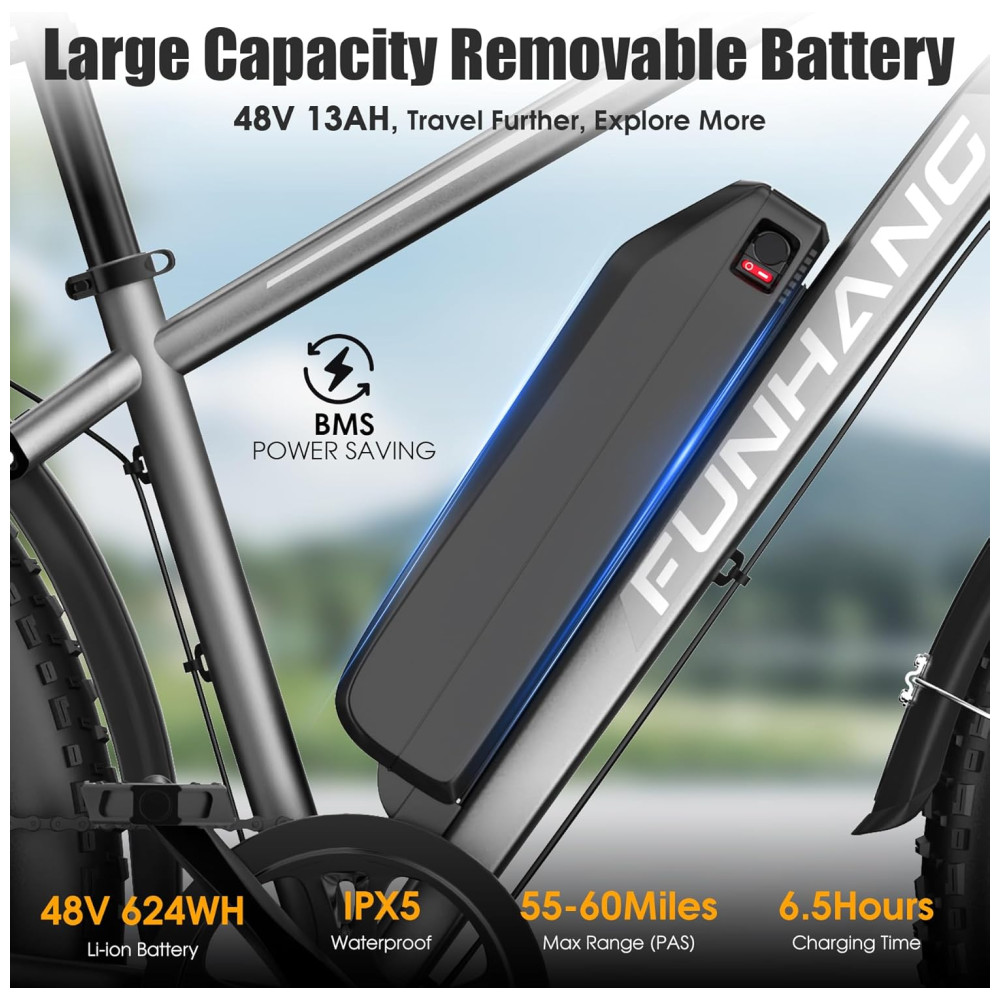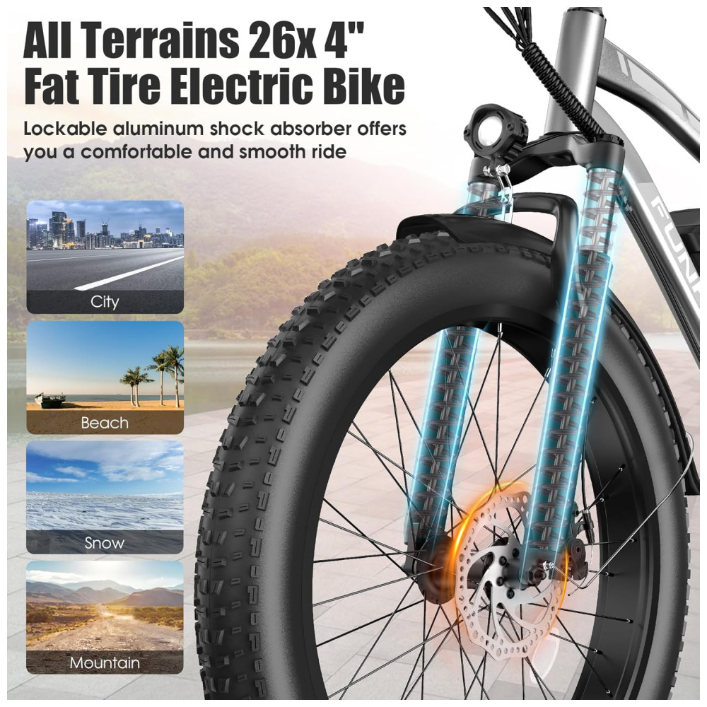 Bicicleta Elétrica Funhang EB-S1 26″ Cinza Prata | Motor 1000W Bateria 48V 13Ah 7 Velocidades 5 Modos de Condução