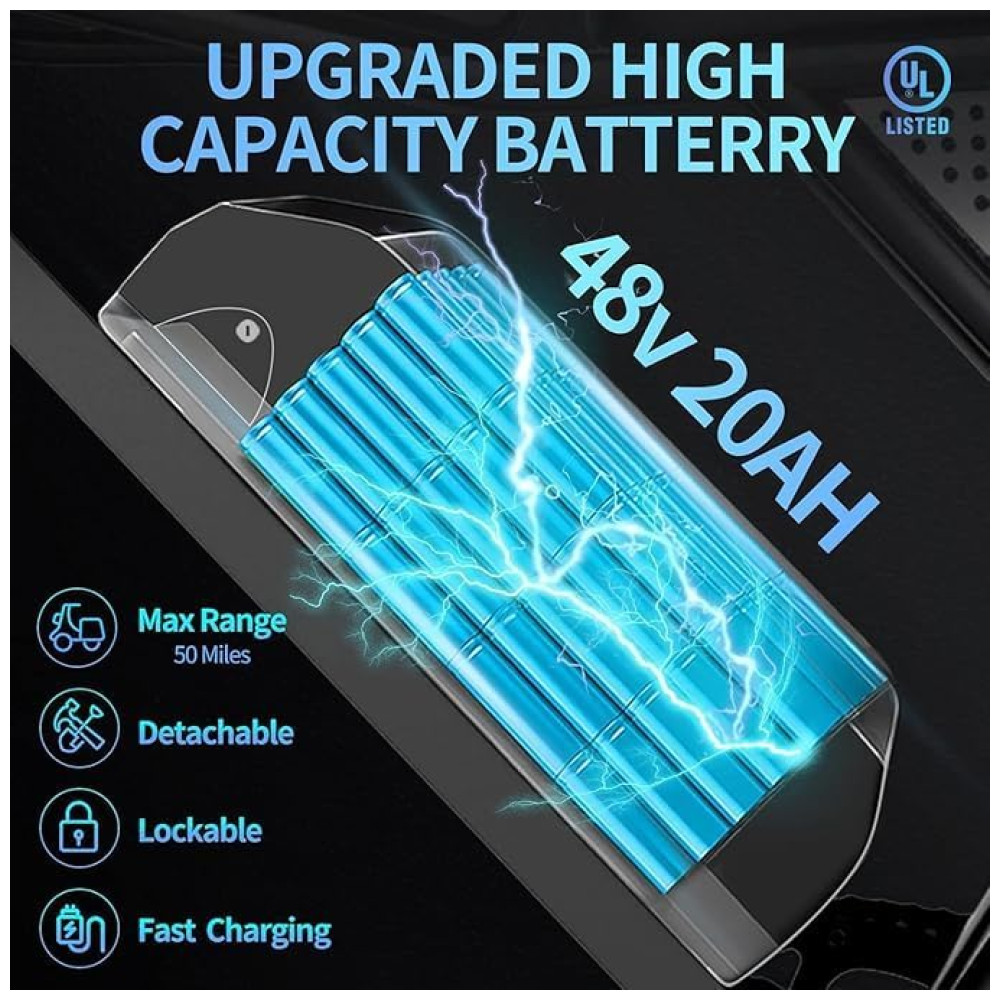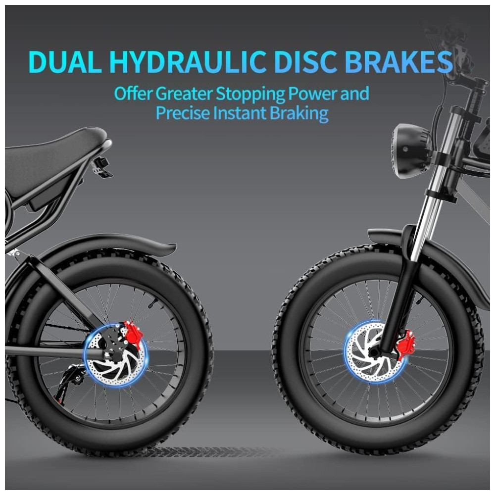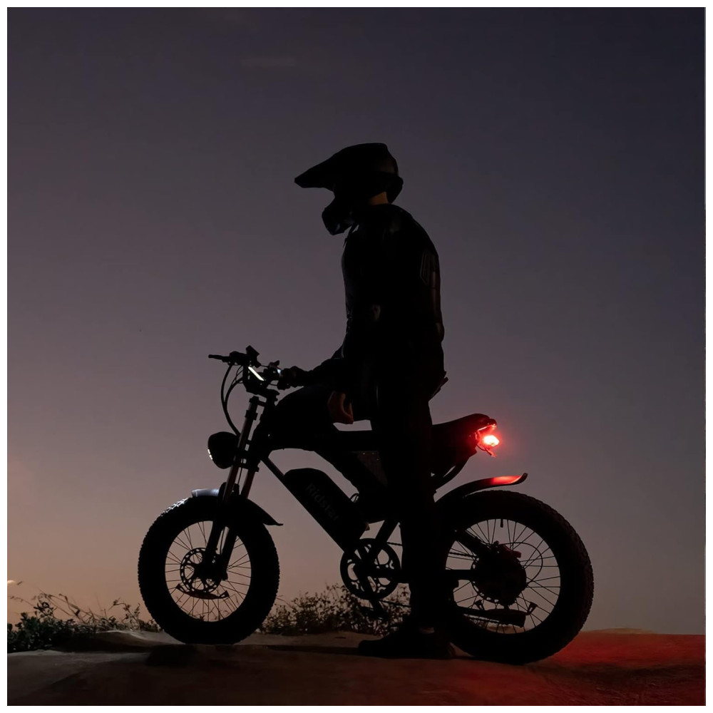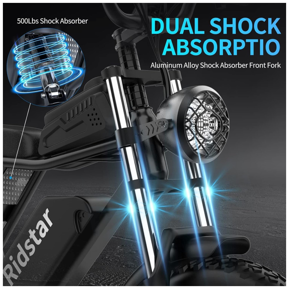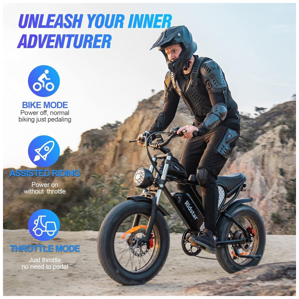 A Bicicleta Elétrica Ridstar para adultos apresenta um design imaginativo e único, com um farol de bicicleta legal para máxima segurança em passeios noturnos. O assento é macio e delicado, com um suporte oco reforçado que proporciona uma experiência emocionante. Vire cabeças com essa bicicleta e seja a inveja de todos. Com um motor de alta potência de 1500W e uma bateria removível de 48V 20Ah, essa bicicleta é perfeita para deslocamentos diários e aventuras na montanha. Os pneus largos de 20×4 resistentes a furos proporcionam aderência estável em qualquer terreno, e os freios a disco hidráulicos garantem uma frenagem precisa. Com suspensão dianteira e traseira, troca de marchas de 7 velocidades, e 3 modos de pilotagem, essa bicicleta oferece conforto, controle e um alcance de até 120 km em modo elétrico puro. Completa com display LCD, luzes dianteira e traseira de alta luminosidade, suporte para celular, caixa de armazenamento espaçosa e fácil montagem.
