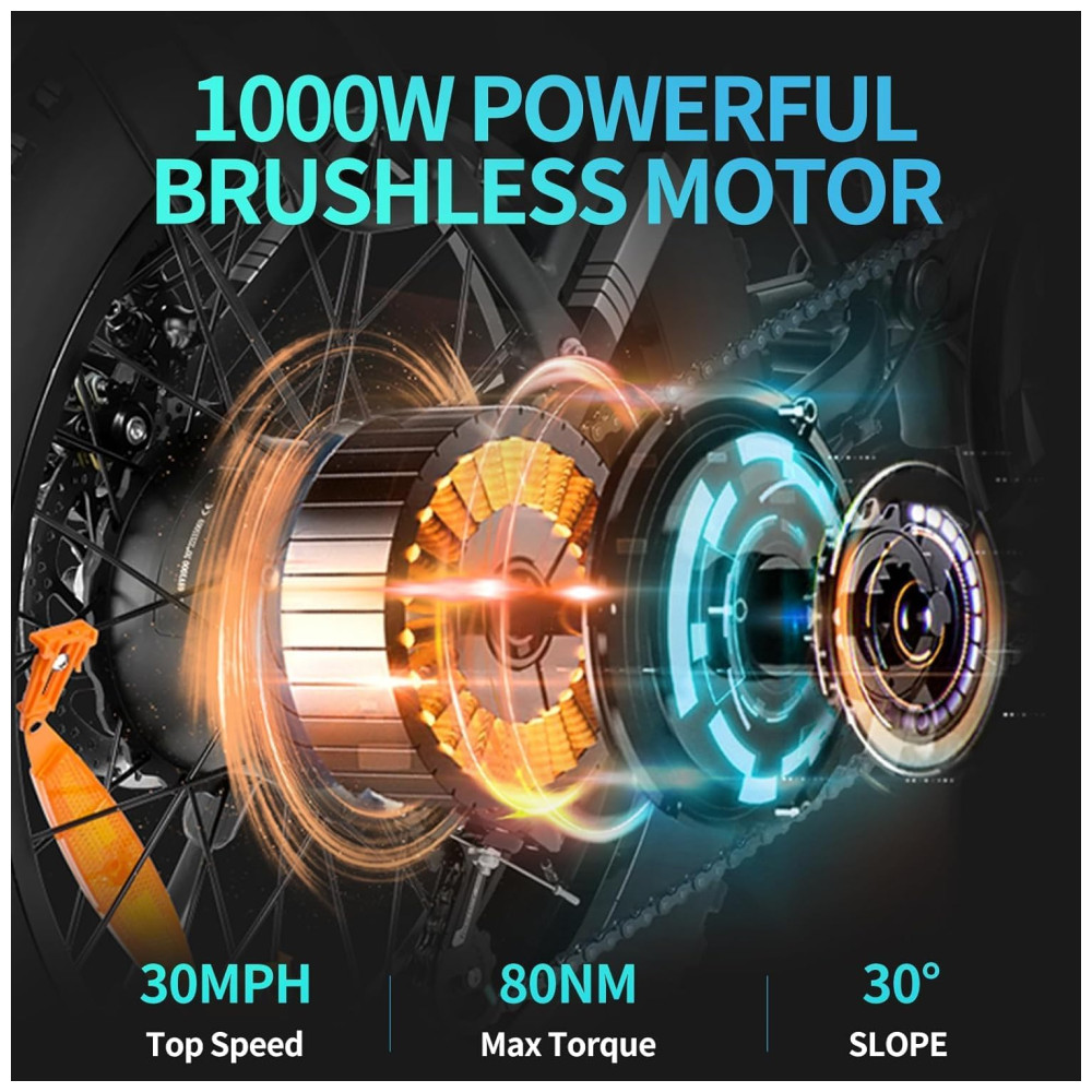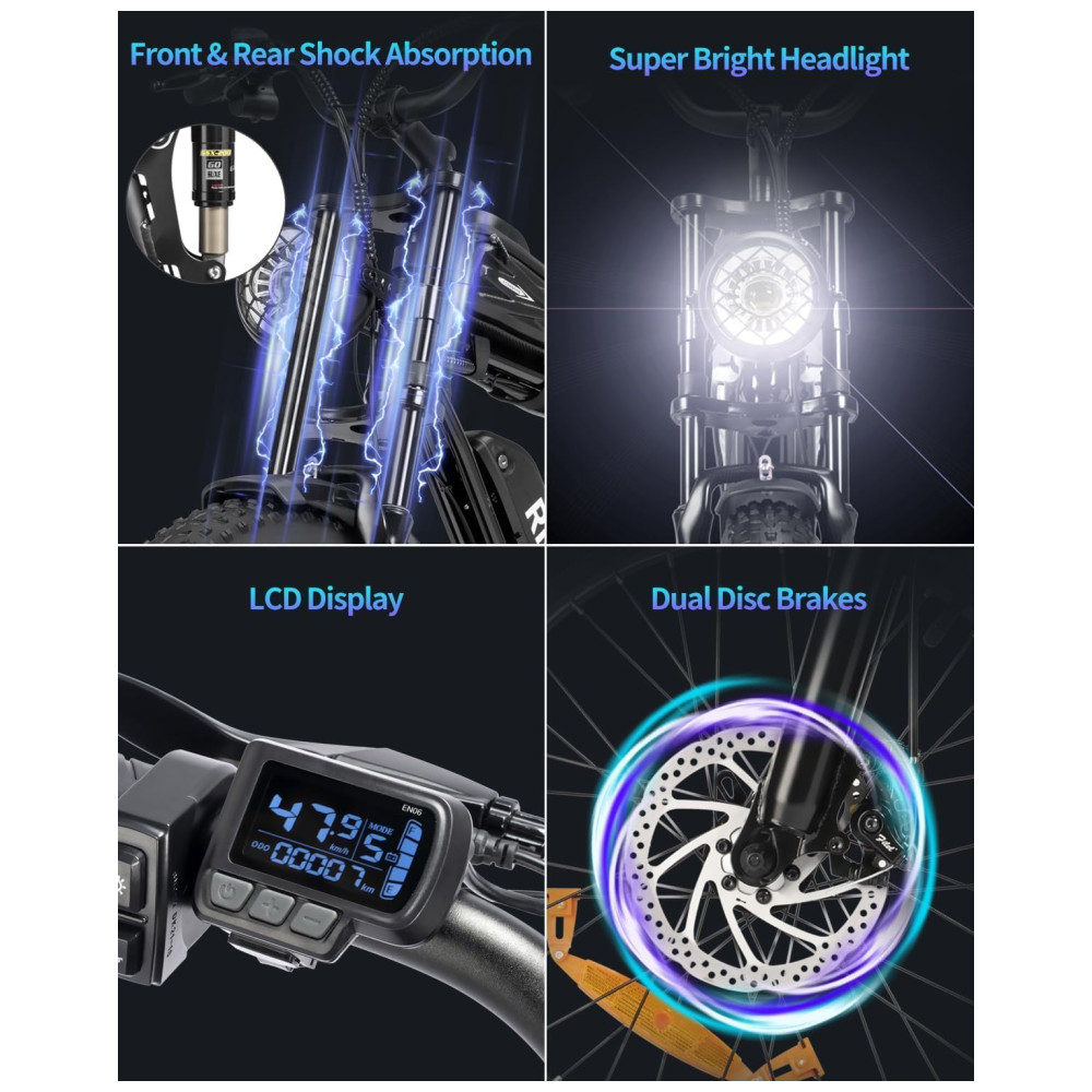 Bicicleta Elétrica para Adultos Ridstar Q20 Lite 1000W 48V 15.6AH – Ideal para Aventuras e Deslocamentos Diários