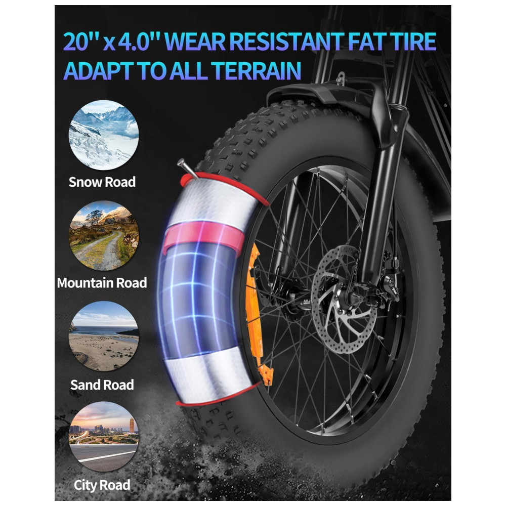 A bicicleta elétrica Ridstar Q20 Lite é a escolha perfeita para quem deseja conquistar montanhas e superar desafios diários. Com um motor potente de 1000W, atinge até 25 MPH e encara subidas de até 25 graus, proporcionando alta eficiência com baixo consumo de energia e operação silenciosa. Equipada com bateria removível de 48V 13Ah, oferece autonomia de até 35 milhas com assistência de pedal ou 25 milhas apenas com energia elétrica. Com pneus pneumáticos de 20″, suspensão dianteira e traseira, display LCD, freios a disco, e farol de LED, a Q20 Lite garante conforto, segurança e performance em qualquer terreno, suportando até 300 lbs. Aproveite a liberdade de deslocar-se diariamente ou explorar novos caminhos, sem se preocupar com trânsito ou transporte público. Ideal para quem busca aventura e praticidade no dia a dia.