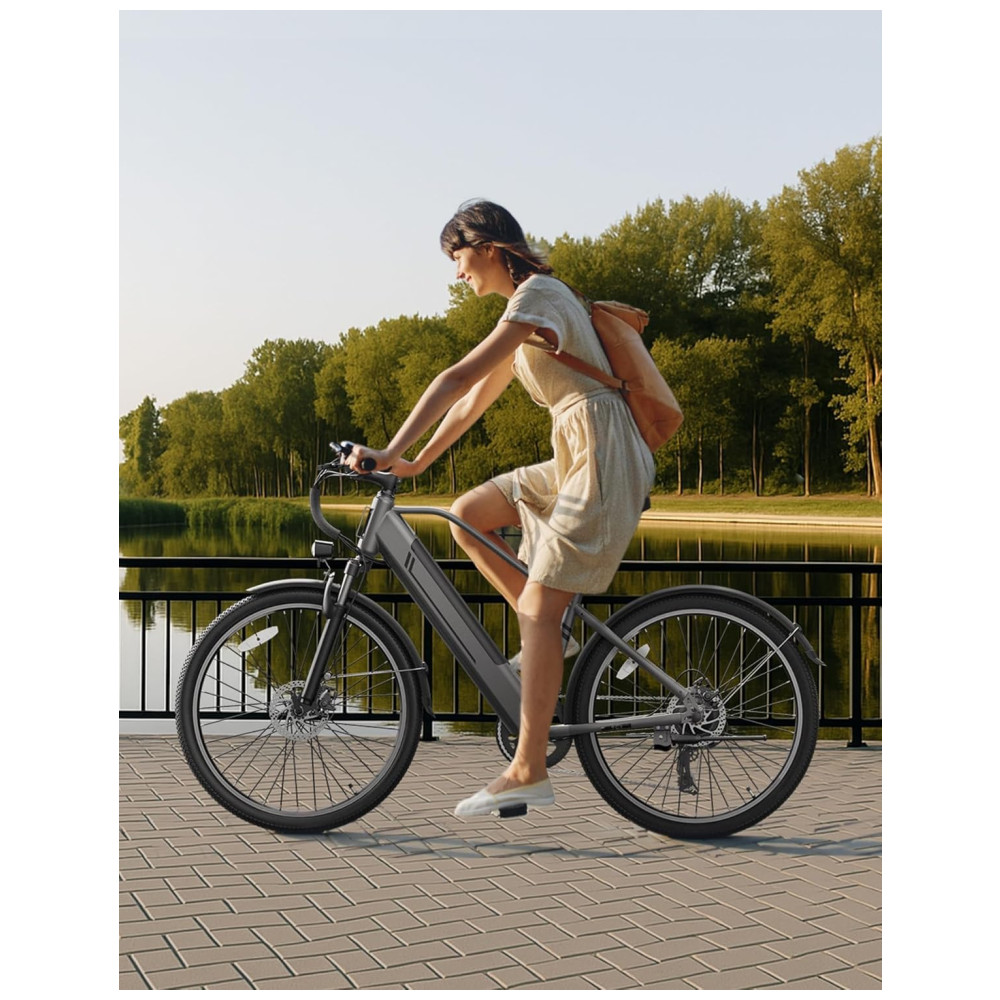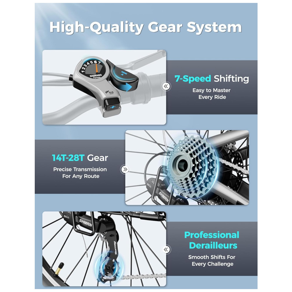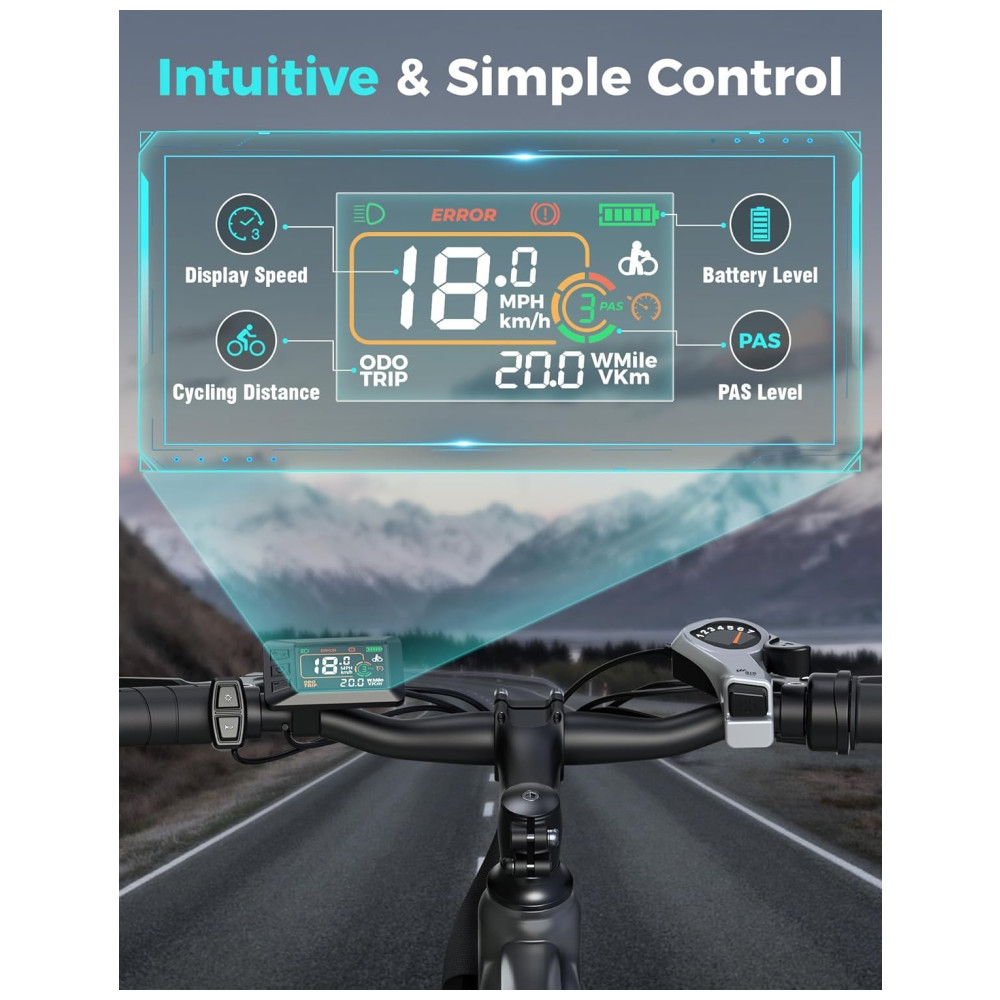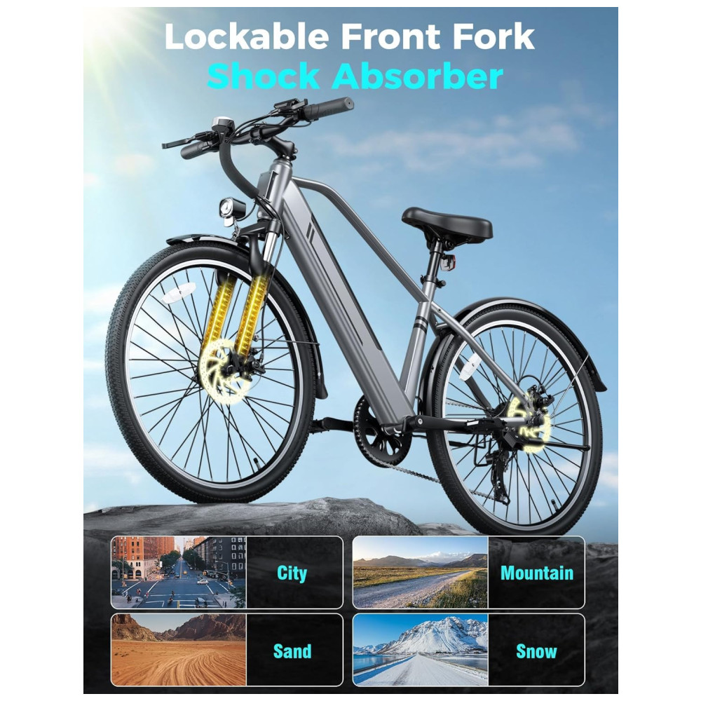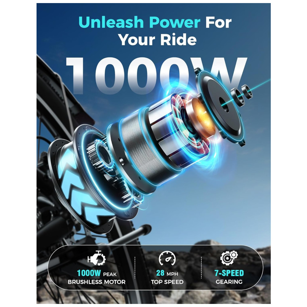 Desfrute de excelência em potência com a Bicicleta Elétrica YOLOWAY, equipada com um motor potente de 750W (pico de 1000W). Alcance velocidades de até 25mph e conquiste qualquer terreno com facilidade, desde colinas íngremes até trilhas acidentadas. A E-bike oferece autonomia de até 45 milhas por carga, impulsionada por uma bateria removível de alta capacidade de 48V 374.4Wh, que pode ser totalmente carregada em apenas 5-6 horas. Com um design travável e duas chaves, você pode facilmente carregar a bateria em casa ou no escritório. Desfrute de trocas de marchas suaves e precisas com o sistema de 7 velocidades da Shimano e pneus all-terrain de 26″ x 2.0″, garantindo estabilidade e aderência em qualquer terreno. A suspensão dianteira absorve impactos para uma experiência confortável, seja pelas ruas da cidade ou trilhas off-road. Para sua segurança, a YOLOWAY YC1 conta com freios a disco duplo para uma frenagem confiável, mesmo em condições adversas, além de farol LED, refletor traseiro e faixas reflexivas nos pneus para maior visibilidade dia e noite. Com um design ergonômico que suporta até 150kg, esta E-bike garante conforto em longos passeios. A montagem é simples e rápida, com 85% do produto pré-montado, e acompanha garantia de 12 meses. Comece a pedalar sem preocupações com o suporte técnico vitalício da YOLOWAY.