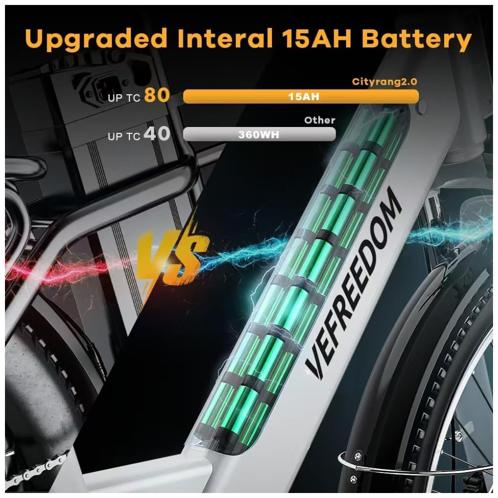 Motor de alta velocidade de 500 W, sem escovas, pico de 1000 W e transmissão de 7 velocidades, tornando colinas íngremes e longos passeios uma brisa, até 25+ MPH, até 70+ milhas, a e-bike de longo alcance oferece eficiência perfeita e equilíbrio de potência para garantir que seu passeio seja agradável. Mais potente, mais divertido, sem medo de subir, motores sem escovas de alta eficiência, estáveis, menos ruído, baixa manutenção do que uma bicicleta elétrica de 350 W. A e-bike cityrang 2.0 é perfeita para adultos.