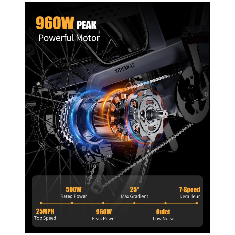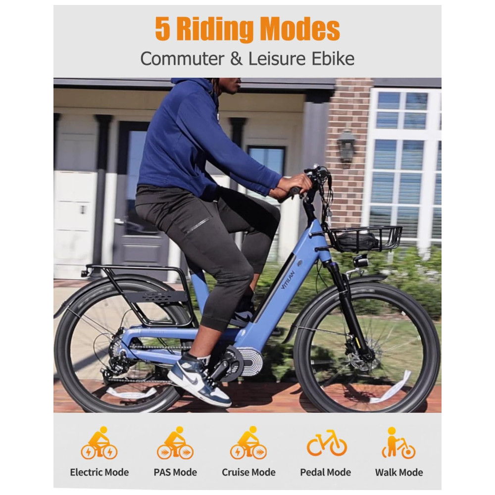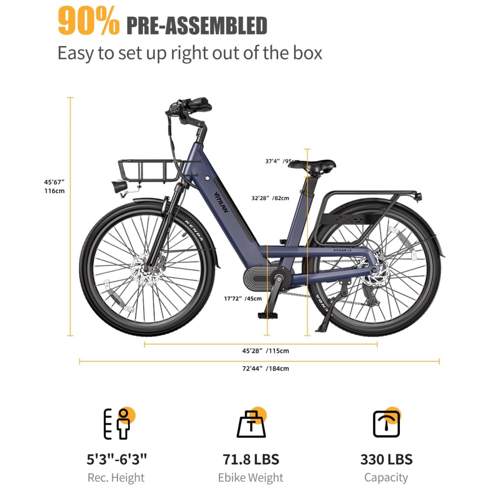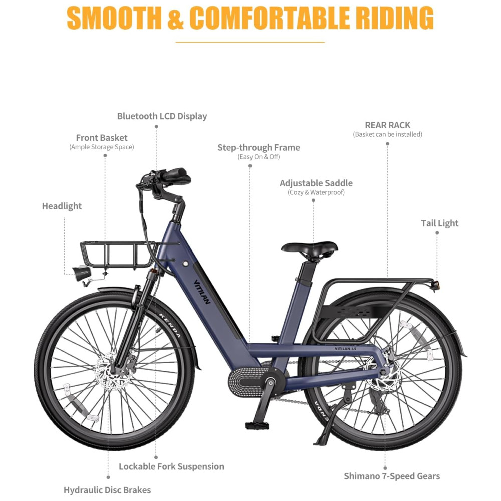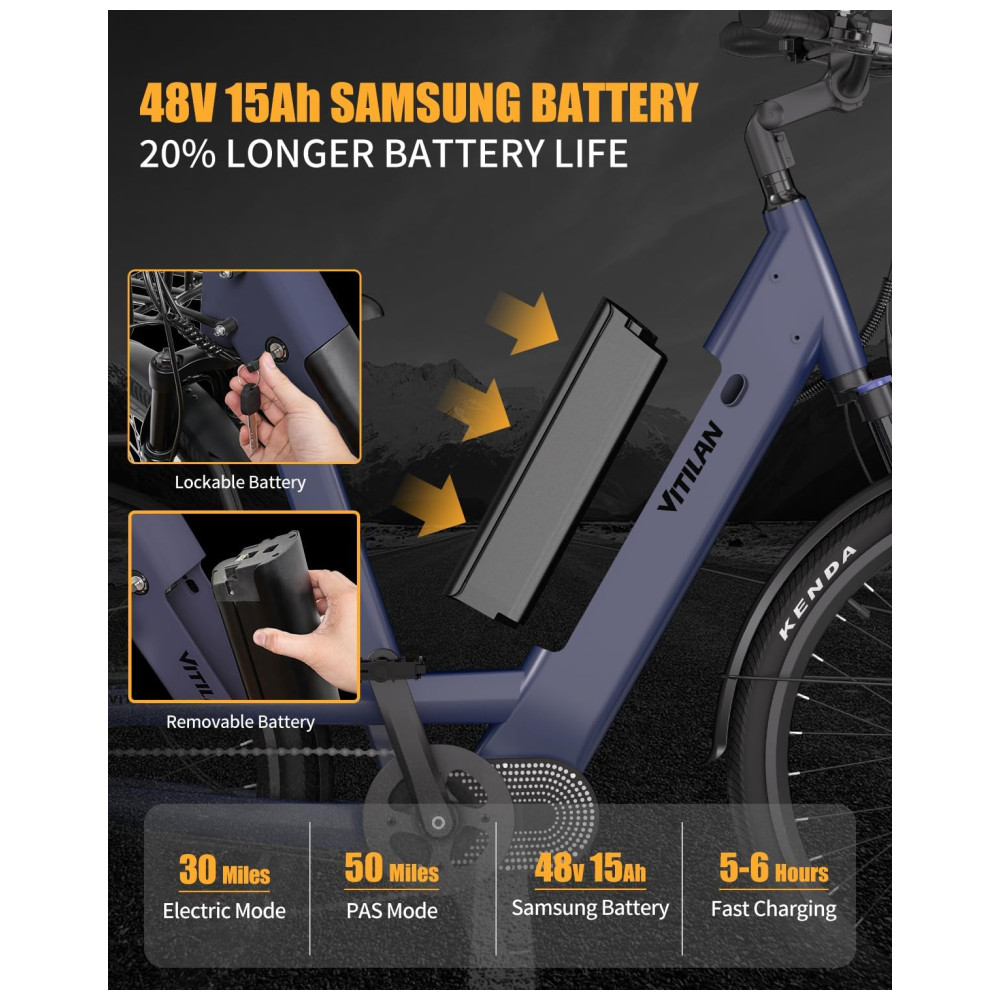 Bicicleta Elétrica VITILAN L5 com Sensor de Torque 500W 25Mph E-bike Passo Baixo para Adultos Mulheres Homens Bateria de Longo Alcance de 48V 15Ah S