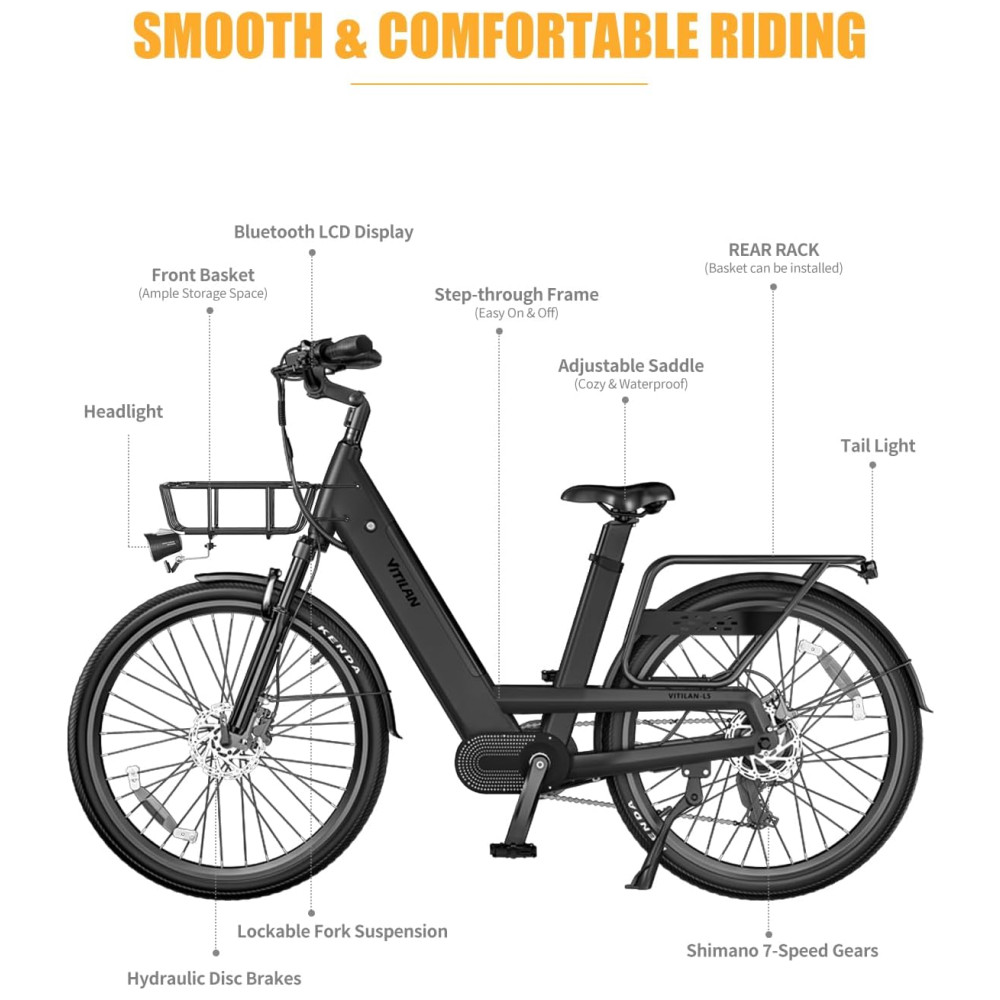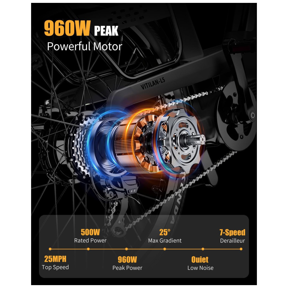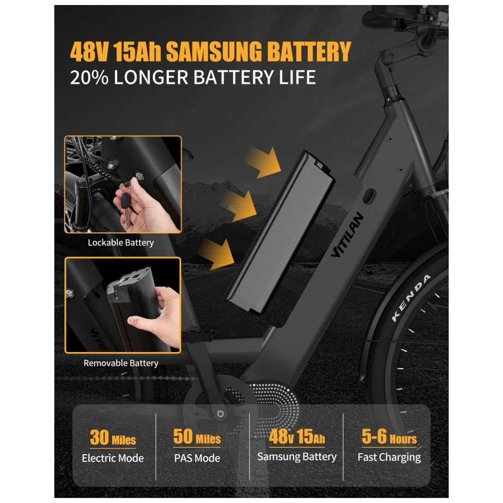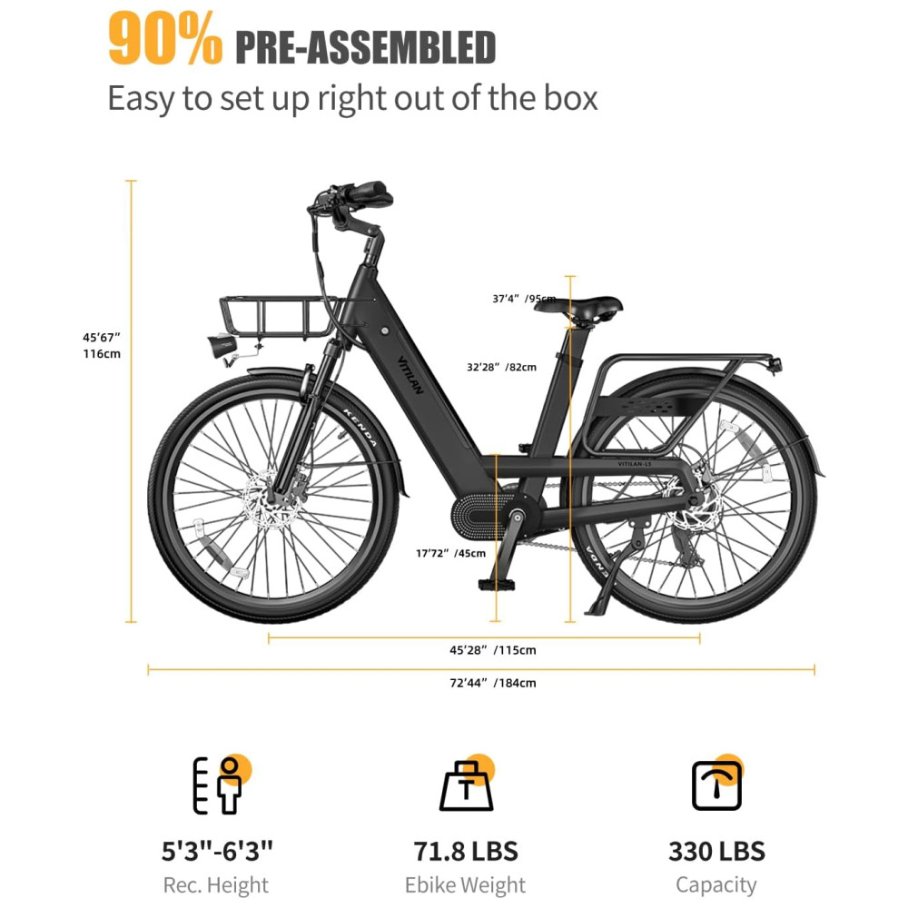 Bicicleta Elétrica VITILAN L5 com Sensor de Torque Motor de 500W 25Mph Ebike Passo A Passo para Adultos Mulheres Homens Bateria de Longo Alcance S