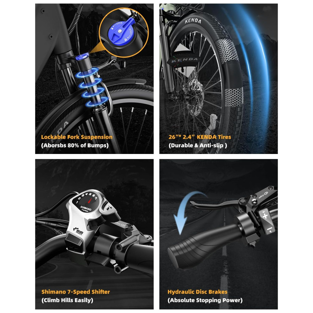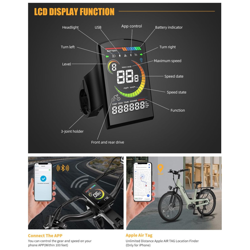 Característica Especial: Guidão e Selim Ajustáveis, Display Digital, Freio a Disco Hidráulico, Suspensão de Garfo, 7 Velocidades, Odômetro, Farol, Luz Traseira, Recarregável, Durável, Portátil, Leve,