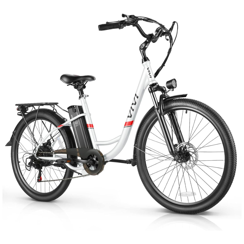 Bicicleta Elétrica VIVI Urbana 26″ Motor 1000W Pico Bateria 48V Removível Autonomia 80 km Até 35 km/h Freios a Disco 7 Marchas Tela LCD 5 Modos Branca