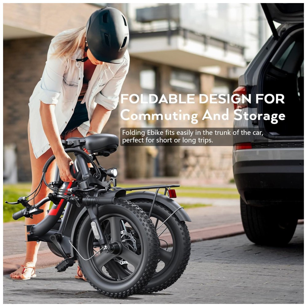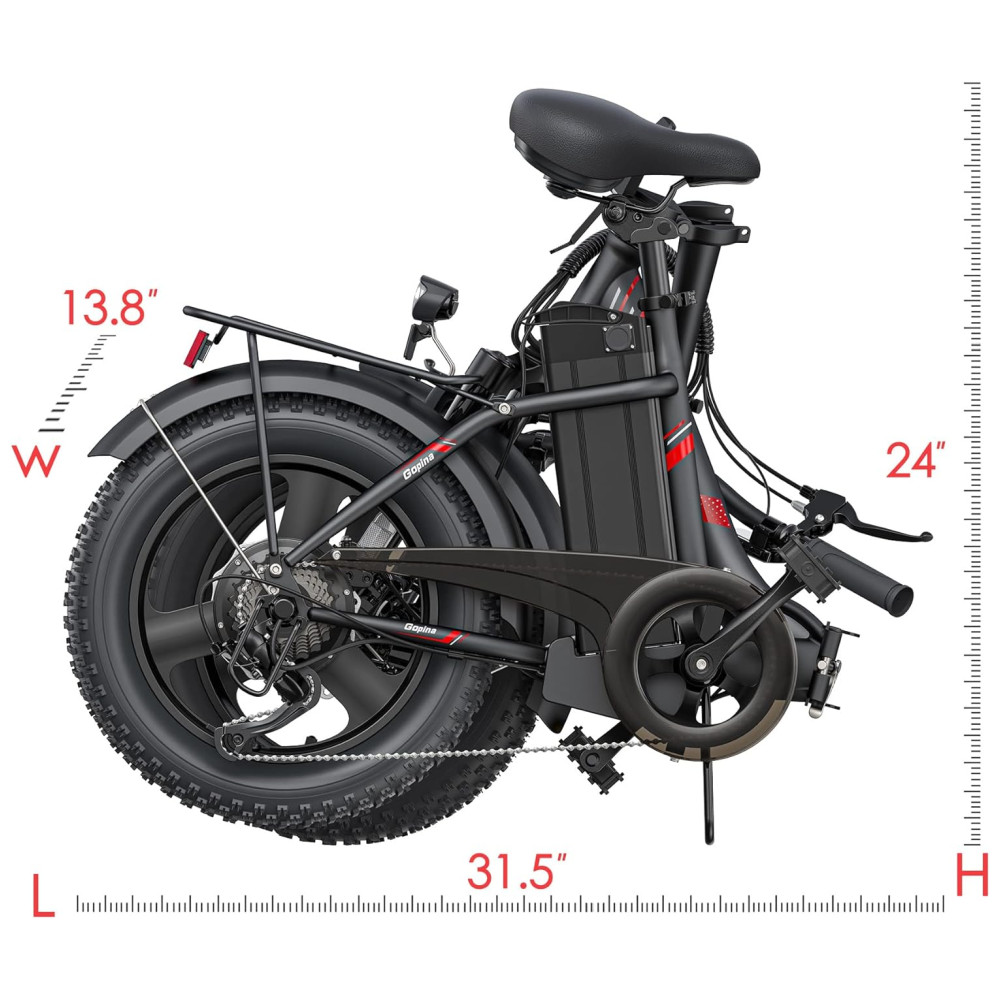 Bicicleta Elétrica Vivi Gopina UL 350W Bateria 48V 78Ah Autonomia 80 km Quadro Degrau Baixo Dobrável Pneus Fat 16×3.0 7 Marchas Tela LCD Assistência ao Pedal Preta e vermelho