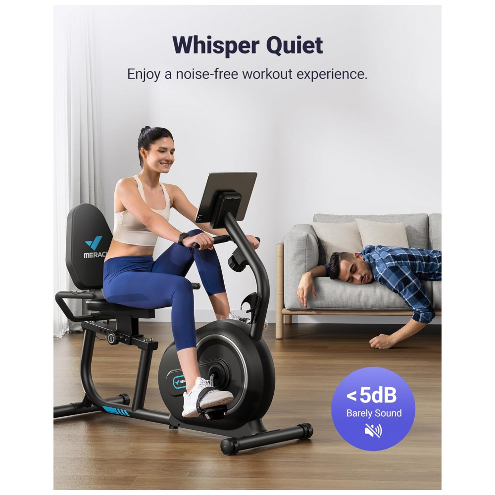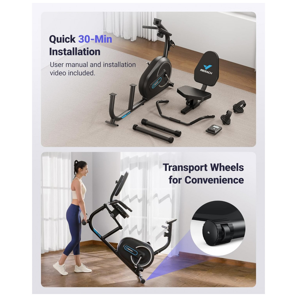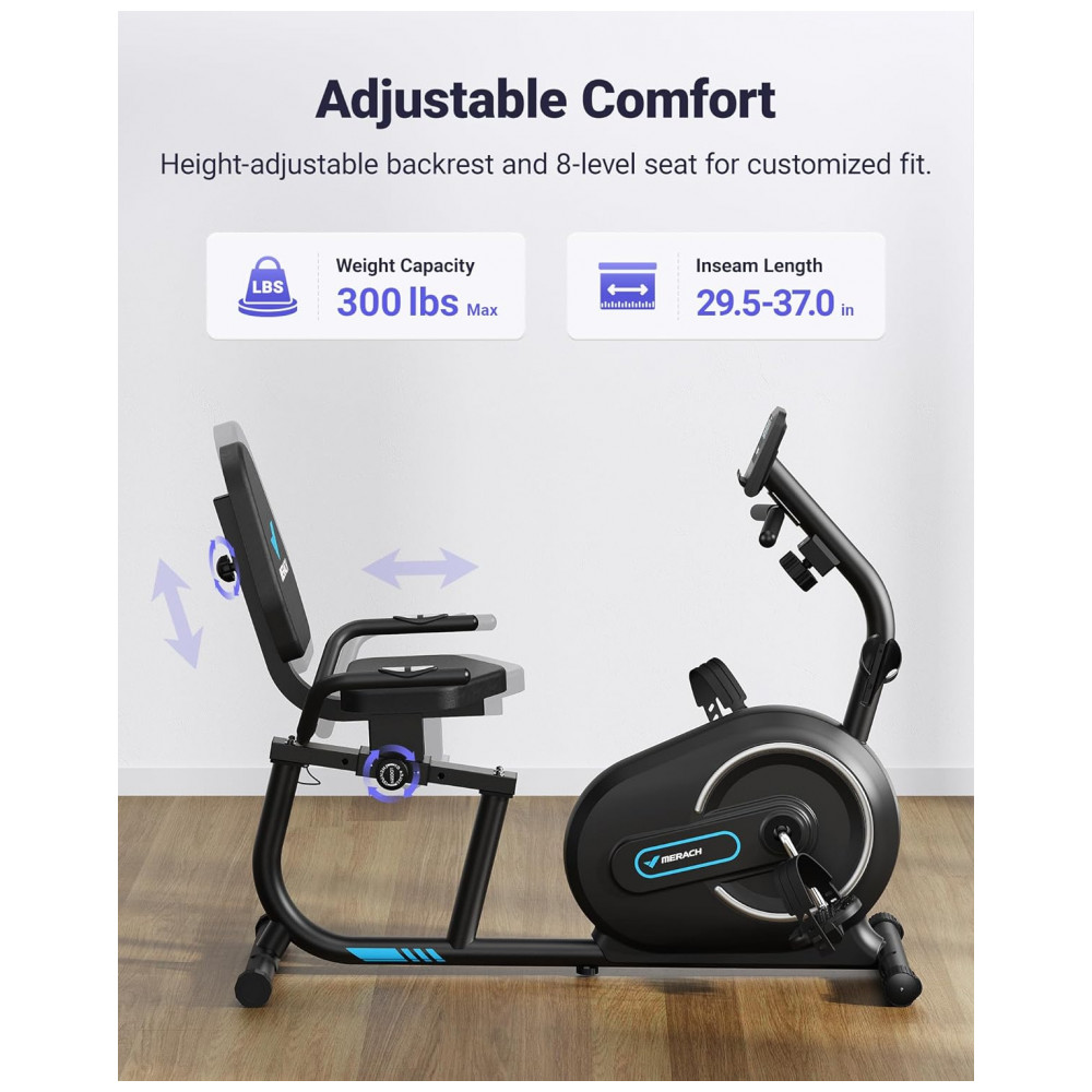 Design de conforto ergonômico A bicicleta ergométrica reclinada MERACH S08 foi projetada para se adequar perfeitamente a você, o assento ajustável desliza para frente e para trás para mantê lo confortavelmente engatado.