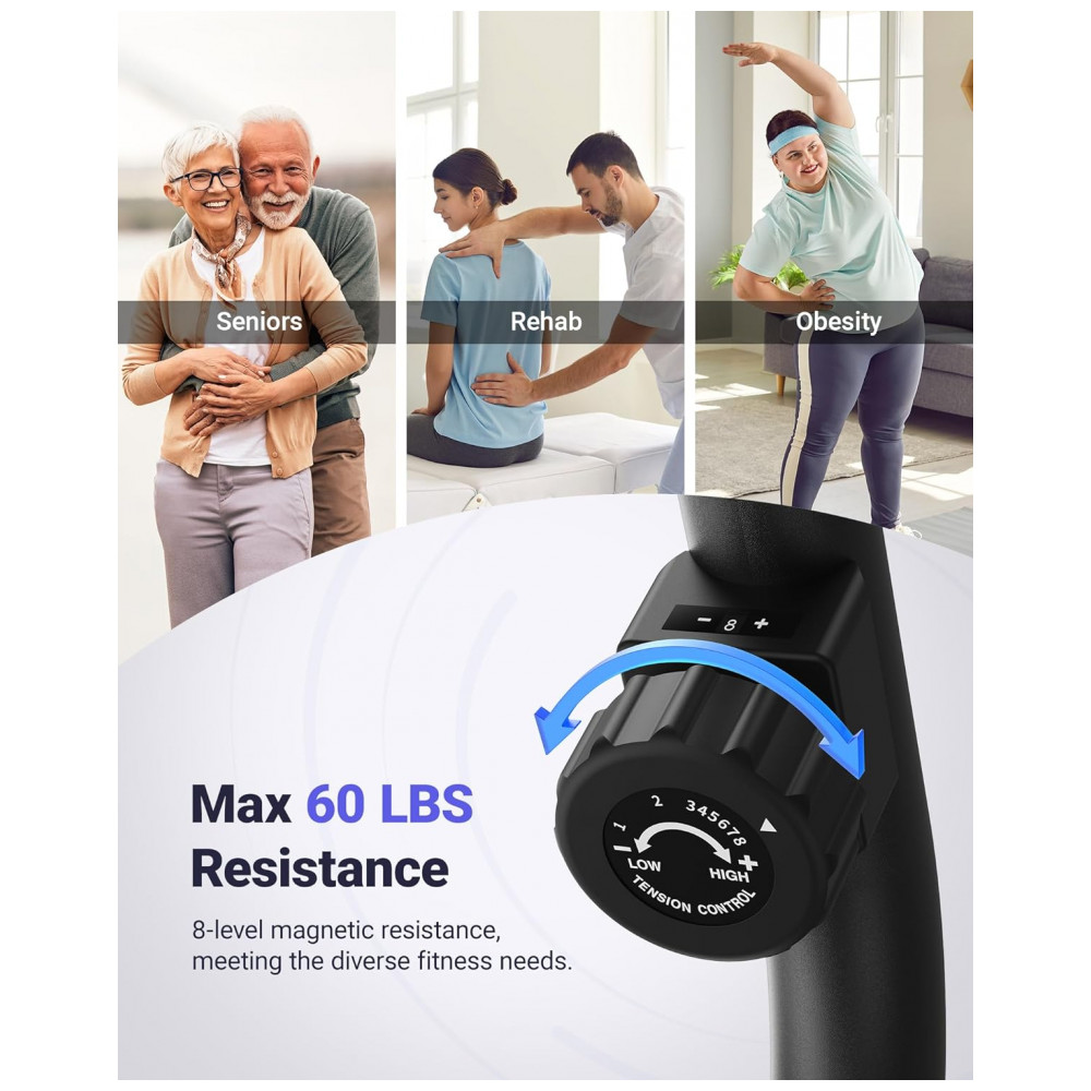 Resistência magnética de 8 níveis O mecanismo de resistência magnética fornece 8 níveis de resistência diferentes para você personalizar seu treino com base em suas necessidades. Nossa resistência magnética oferece uma transição suave entre os níveis de resistência, permitindo que você se concentre mais em alcançar as metas de condicionamento físico.