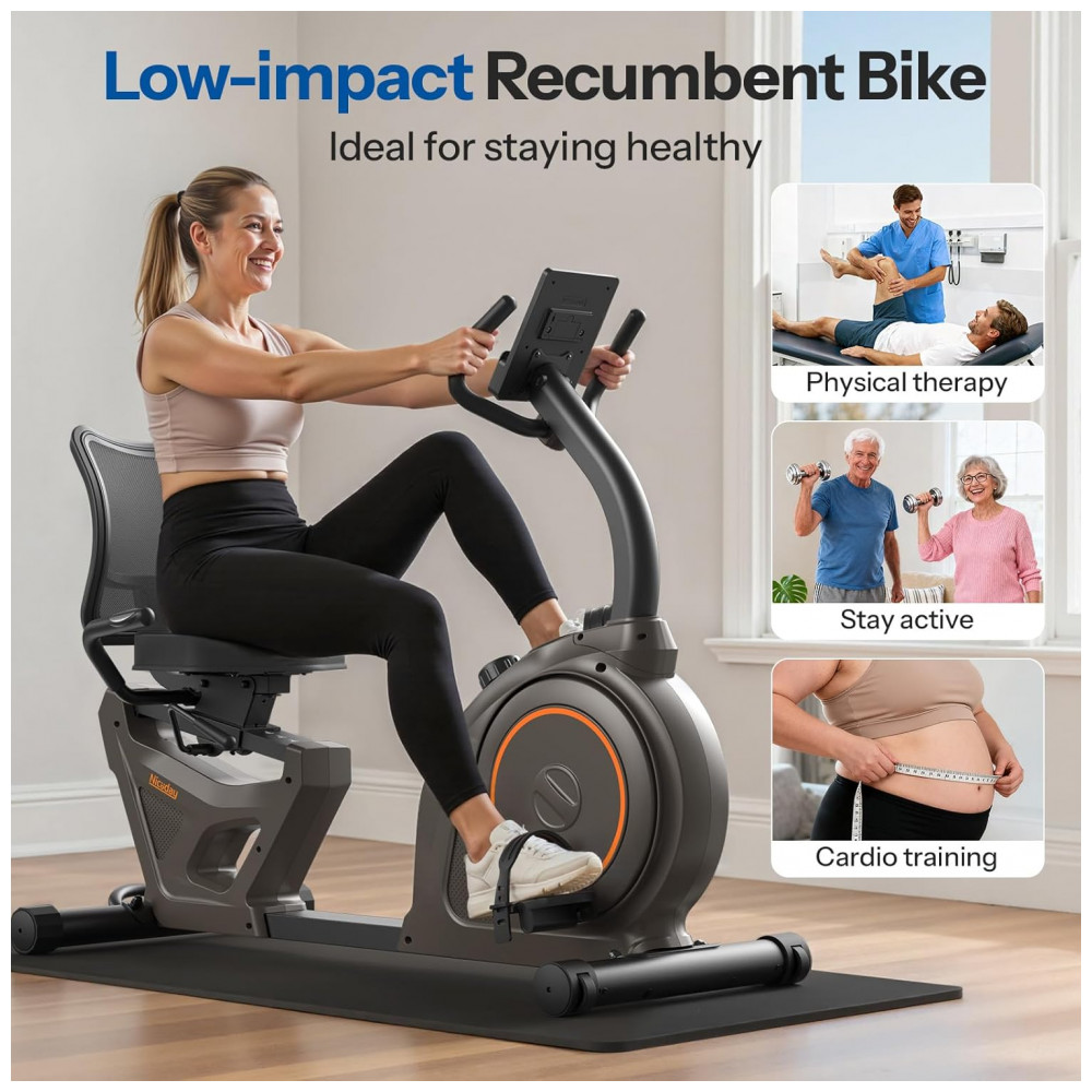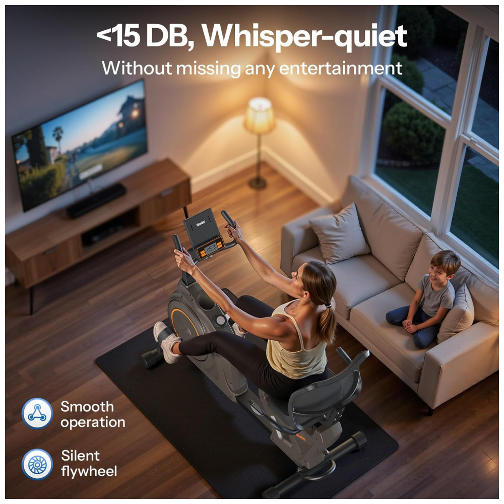 Dados calculados com precisão A bicicleta reclinada Niceday adota uma tela de luz de fundo LED, que possui alto brilho, longa vida útil e operação estável. O display digital mostra claramente tempo, velocidade, distância, calorias e pulso. Todos os dados são calibrados duplamente por algoritmos rigorosos, permitindo que você entenda os efeitos do exercício, formule um plano de exercício mais confiável e atinja suas metas de exercício. Testes extensivos provam que o rastreamento de dados do Niceday é semelhante à maioria dos dispositivos digitais.