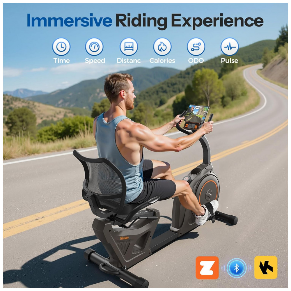 Sistema magnético de alta qualidade A bicicleta reclinada estacionária Niceday day é um equipamento de treinamento muito adequado para uso doméstico. Utiliza ímãs de neodímio 16 de alta qualidade, que possuem resistência maior e mais uniforme. O valor da resistência de cada estágio é dobrado. Dura mais do que outras bicicletas magnéticas e foi projetada para exercícios mais suaves e silenciosos. O botão de ajuste de resistência foi projetado para permitir que os usuários alterem facilmente a intensidade durante um treino e é durável e resistente a danos