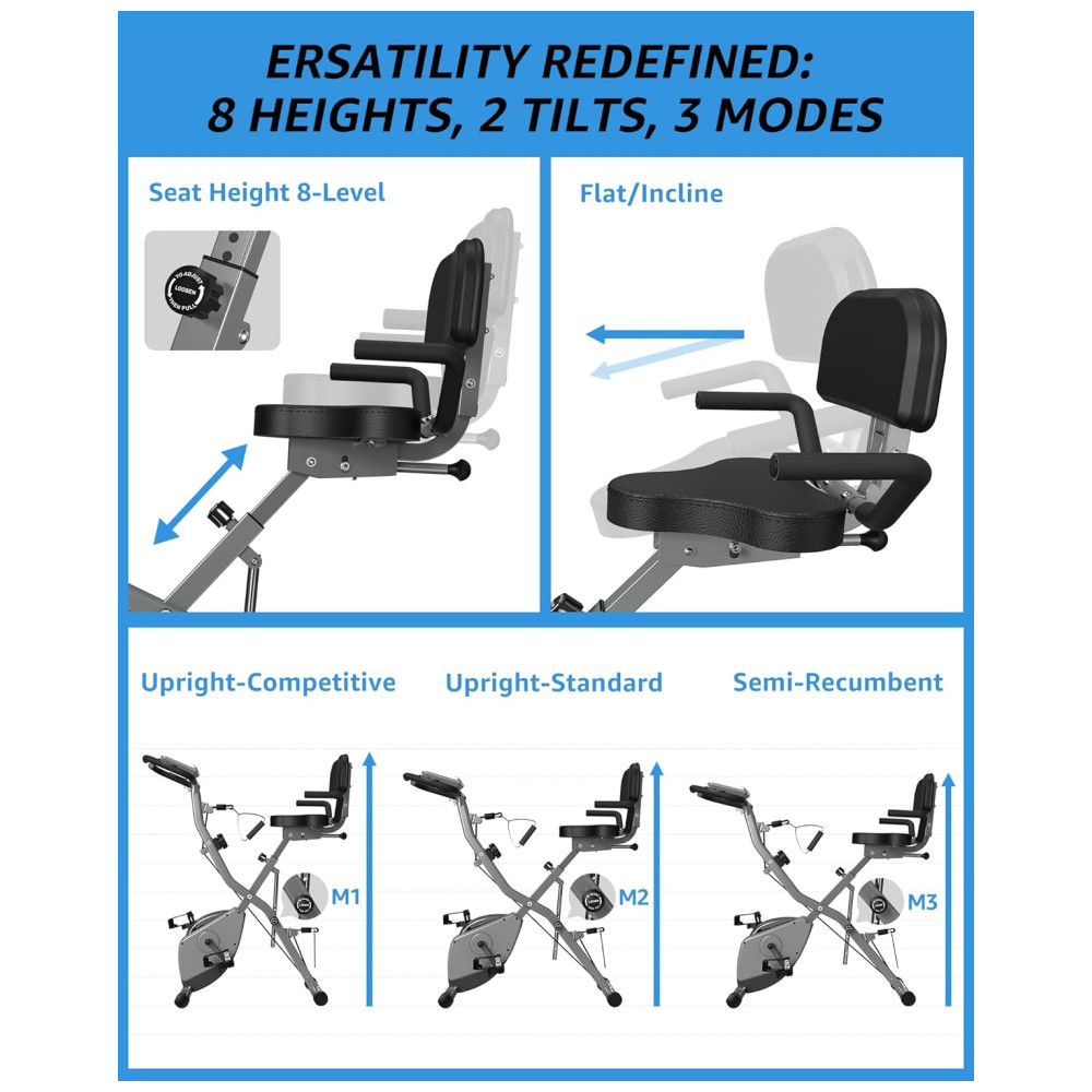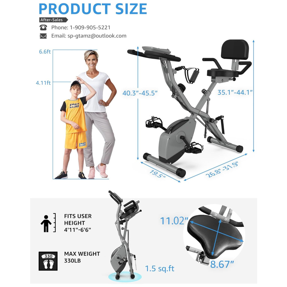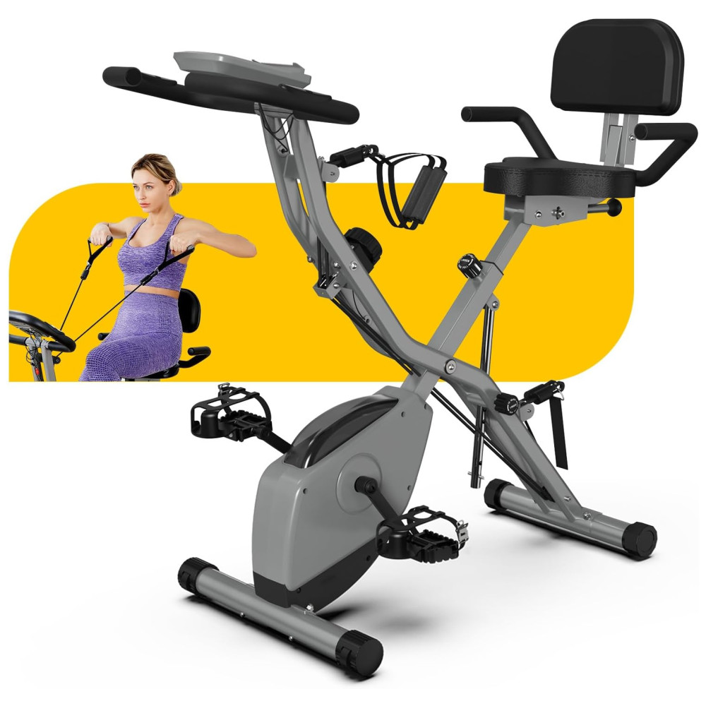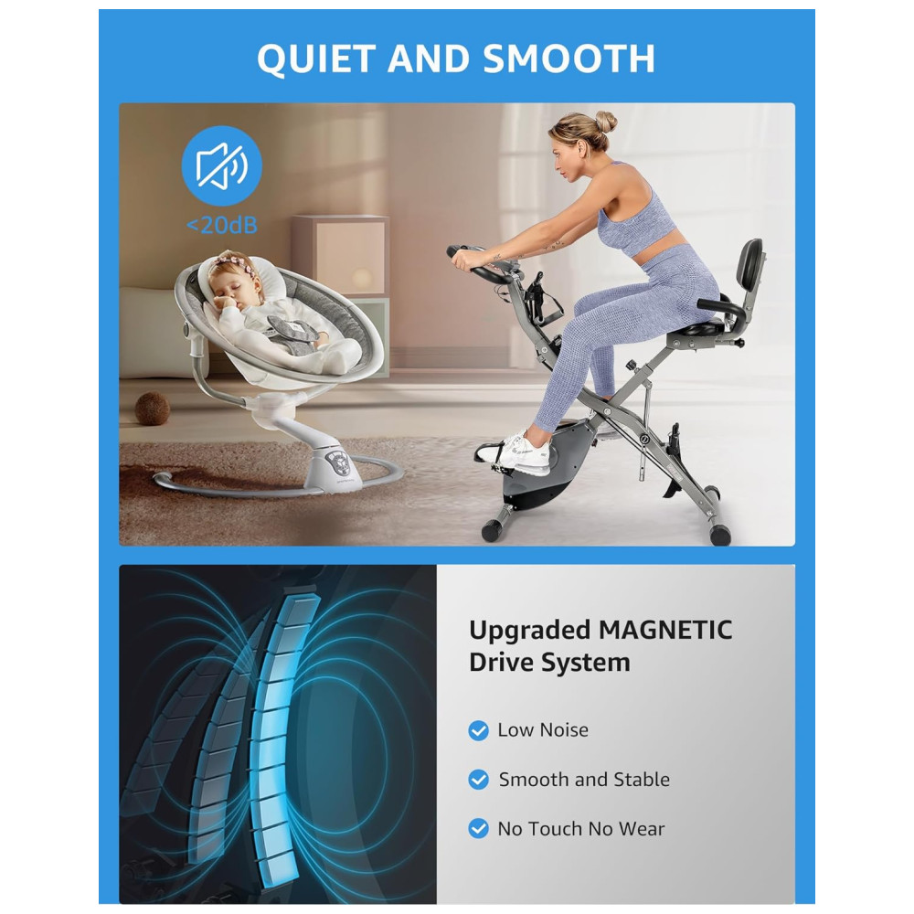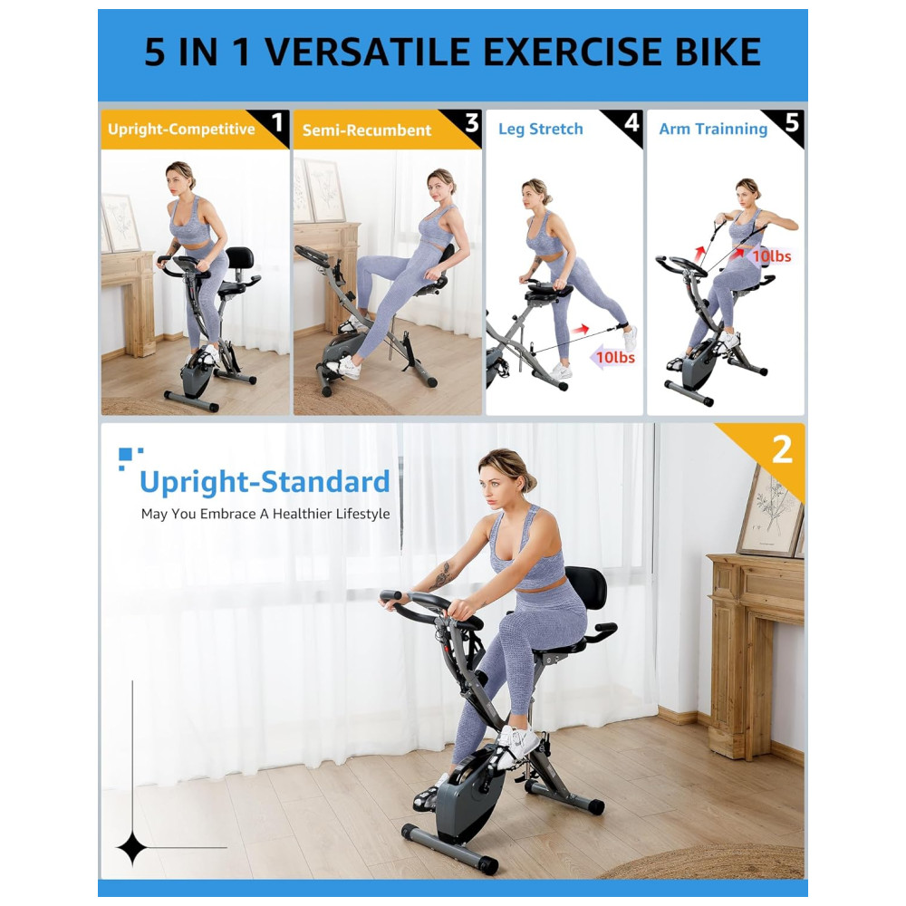 Bicicleta Ergométrica Dobrável 5 em 1 para Exercícios em Casa com 16 Níveis de Resistência Magnética Silenciosa Volante de 3 kgUSLIM.