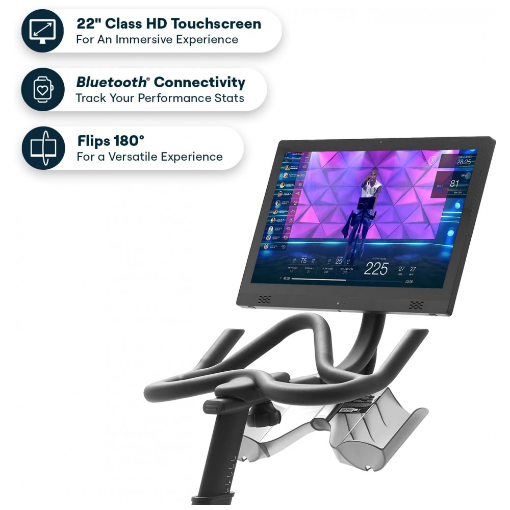 DESIGN Design elegante, recursos de estilo de competição e uma nova tela HD de gira 180 para treinamento cruzado fora do equipamento. Projetada para máximo conforto, funcionalidade suave e imersão total, esta bicicleta conectada remove barreiras, transforma treinos e amplia horizontes.