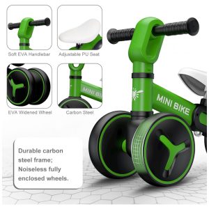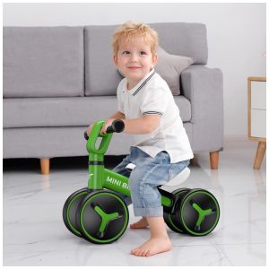 Bicicleta sem Pedal com 4 Rodas para Crianças de 1 a 3 Anos YGJT Verde