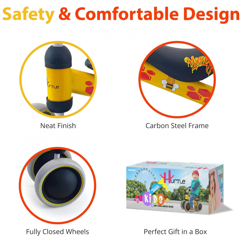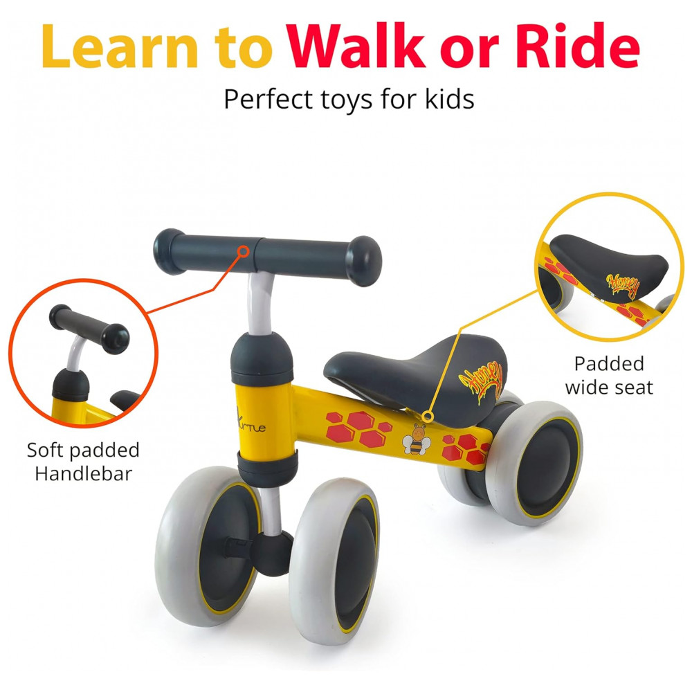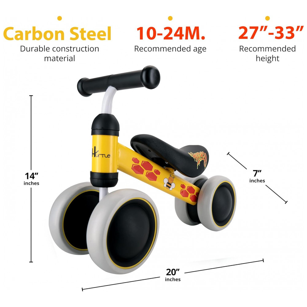 Bicicleta sem Pedal com 4 Rodas para Crianças de 10 a 24 Meses Hurtle Amarela