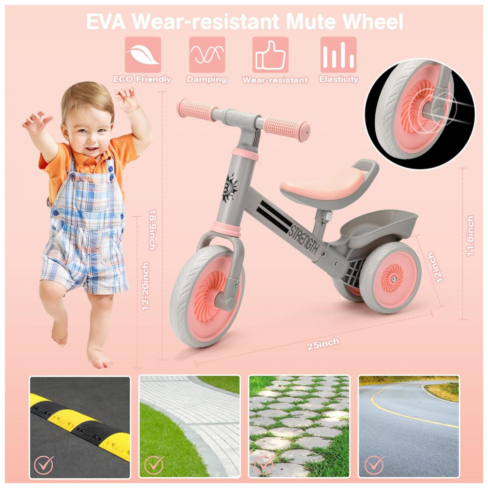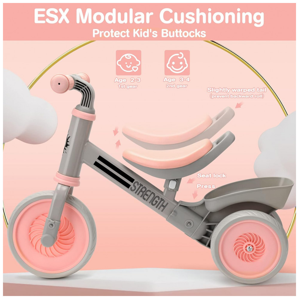 Uma jornada de crescimento segura e feliz O assento desta Balance Bike pode ser ajustado em duas marchas. A primeira marcha até a altura de é recomendada para crianças de 2 a 4 anos. A segunda marcha da Toddler Balance Bike até a altura de é para crianças de 3 a 4 anos. Além disso, o triciclo do bebê é com um módulo de absorção de choque para proteger eficazmente os quadris das crianças.