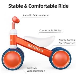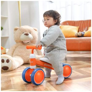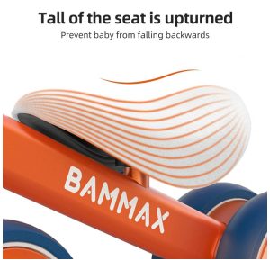 Bicicleta sem Pedal com 4 Rodas para Crianças de 9 a 24 Meses Bammax Laranja