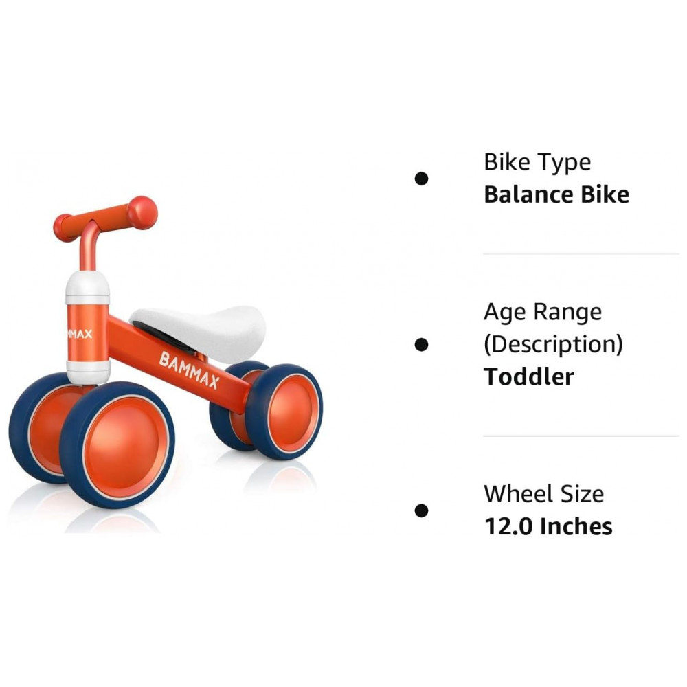 Bicicleta sem Pedal com 4 Rodas para Crianças de 9 a 24 Meses Bammax Laranja