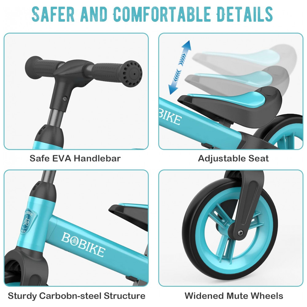 Design adequado para crianças: o carro de equilíbrio de duas rodas é mais atualizado, próximo à bicicleta, o corpo da bicicleta Bobike é feito de aço carbono forte e durável. Assento ajustável e rodas antiderrapantes fechadas fazem com que você tenha tranquilidade ao orientar seus filhos ao andar de bicicleta.