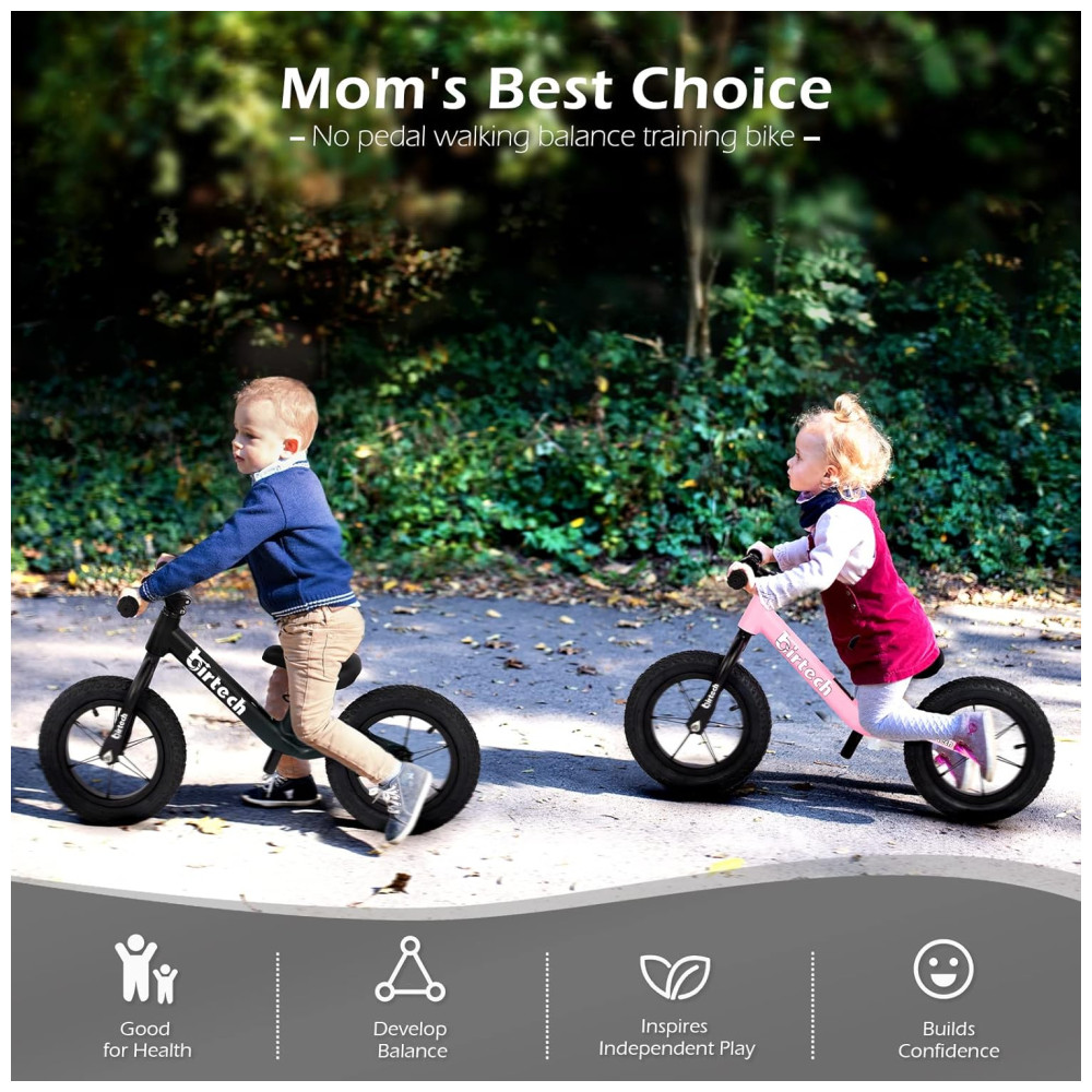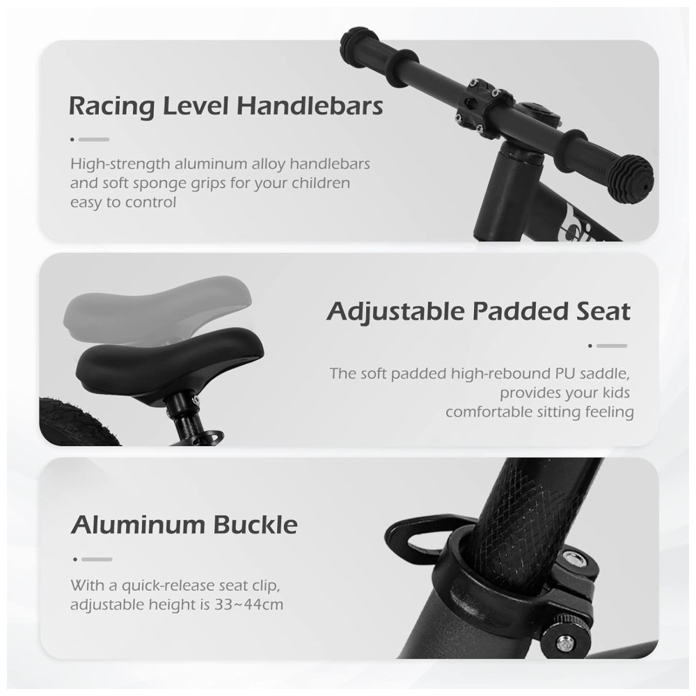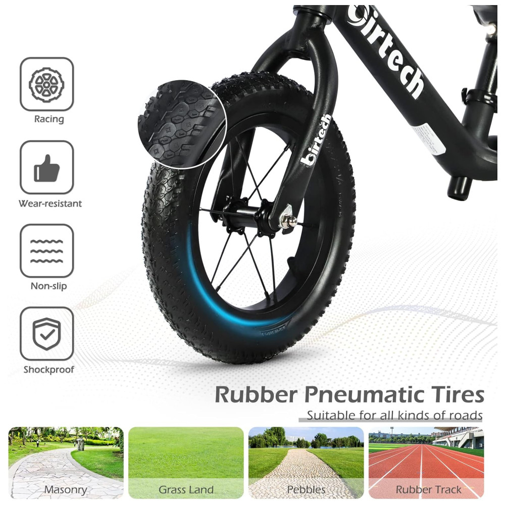 Bicicleta sem Pedal com Assento Ajustável e Pneus Pneumáticos para Crianças de 2 a 6 Anos Birtech Preta