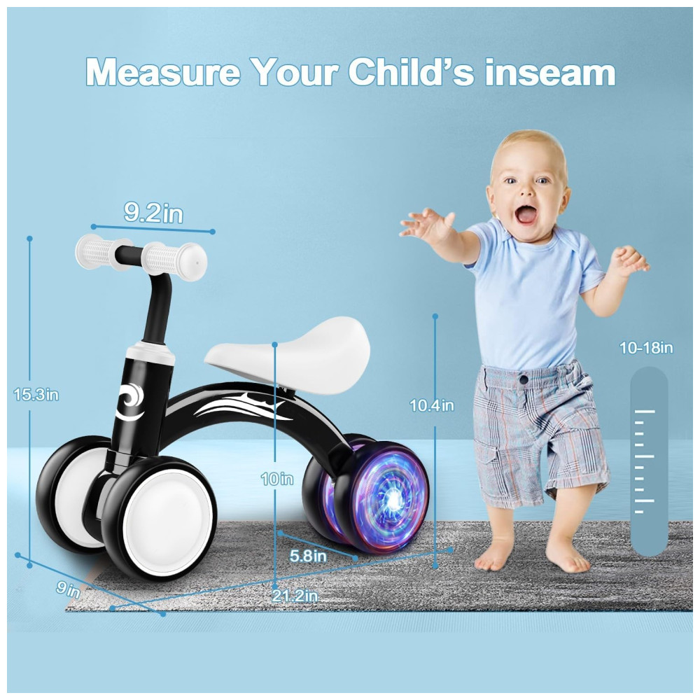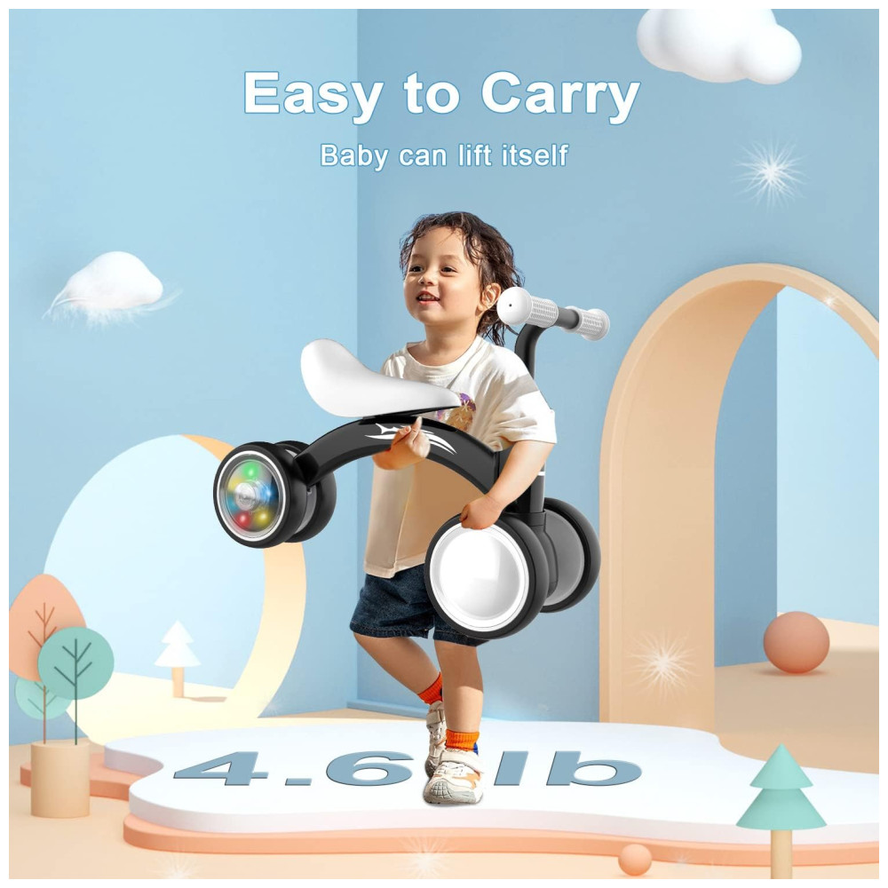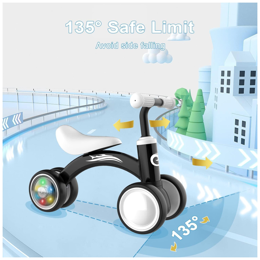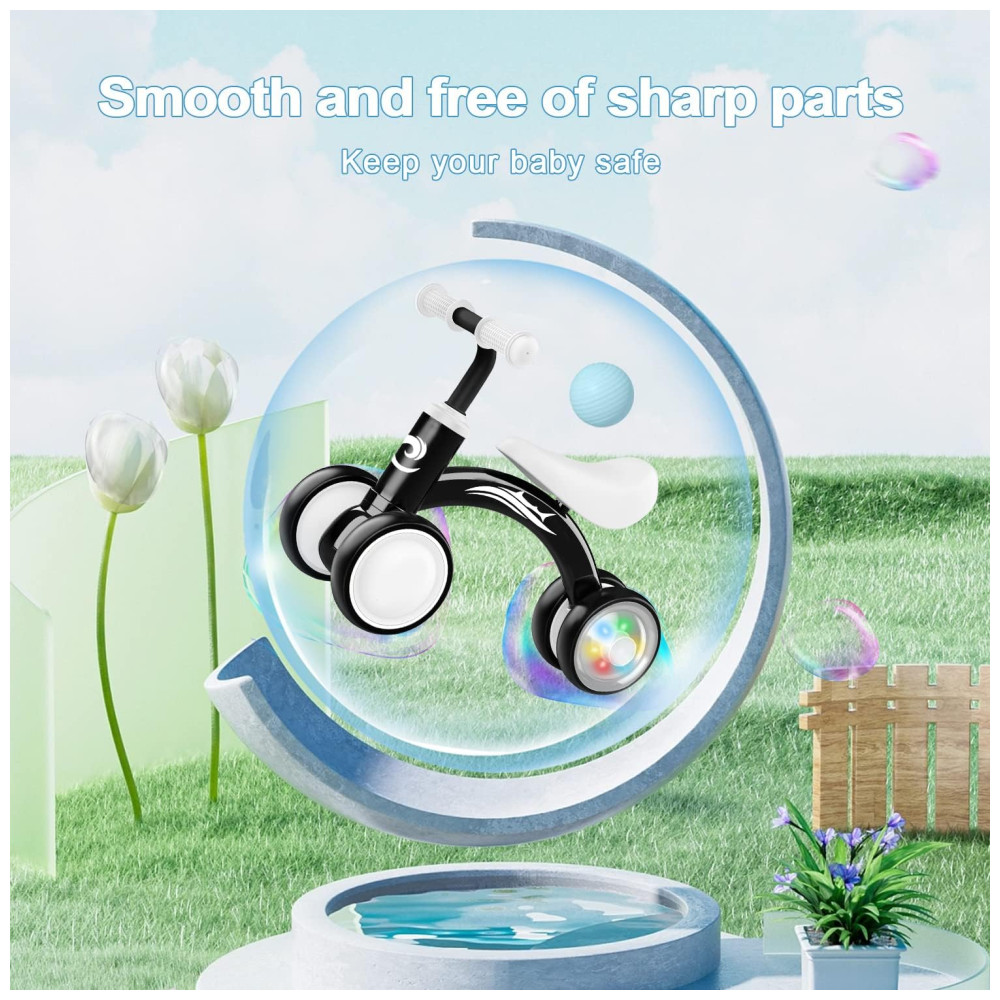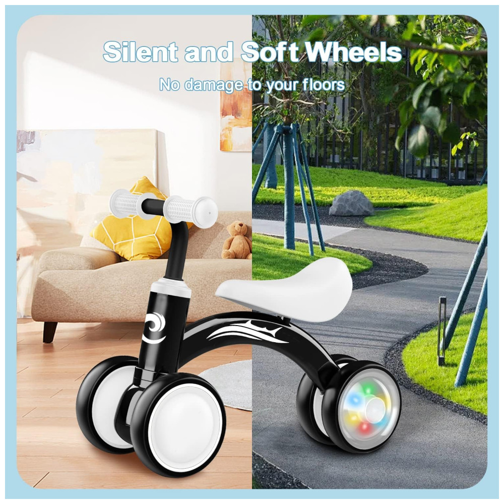 Bicicleta sem Pedal com Assento Macio Rodas Silenciosas e Iluminação para Crianças de 1 a 3 Anos Gamfeiny Preta