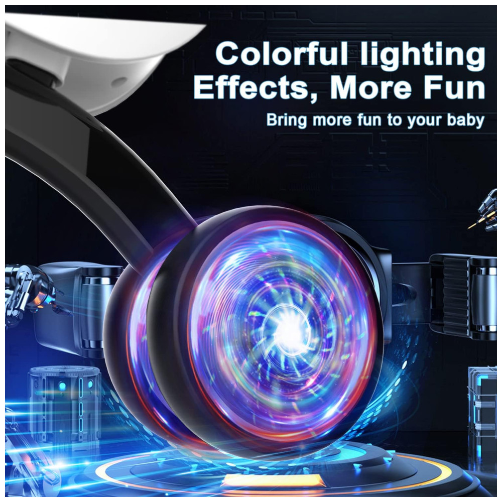 DESIGN DE ILUMINAÇÃO COLORIDA Para melhorar a diversão das crianças, projetamos especialmente a roda traseira com iluminação colorida. Não são necessárias baterias, basta girar as rodas para brilhar. Aumenta muito a diversão das crianças.