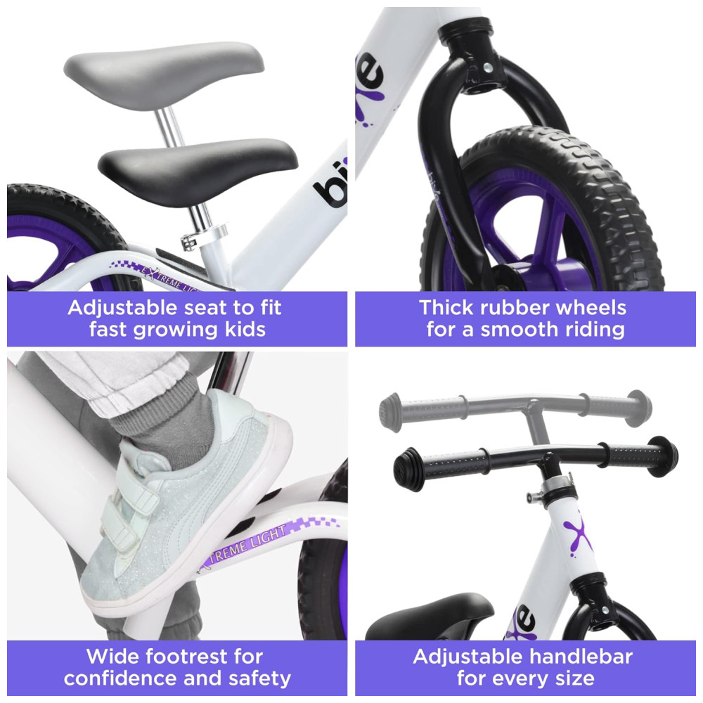 Bicicleta sem Pedal de Alumínio Leve para Crianças de 2 a 5 Anos Bixe Roxa