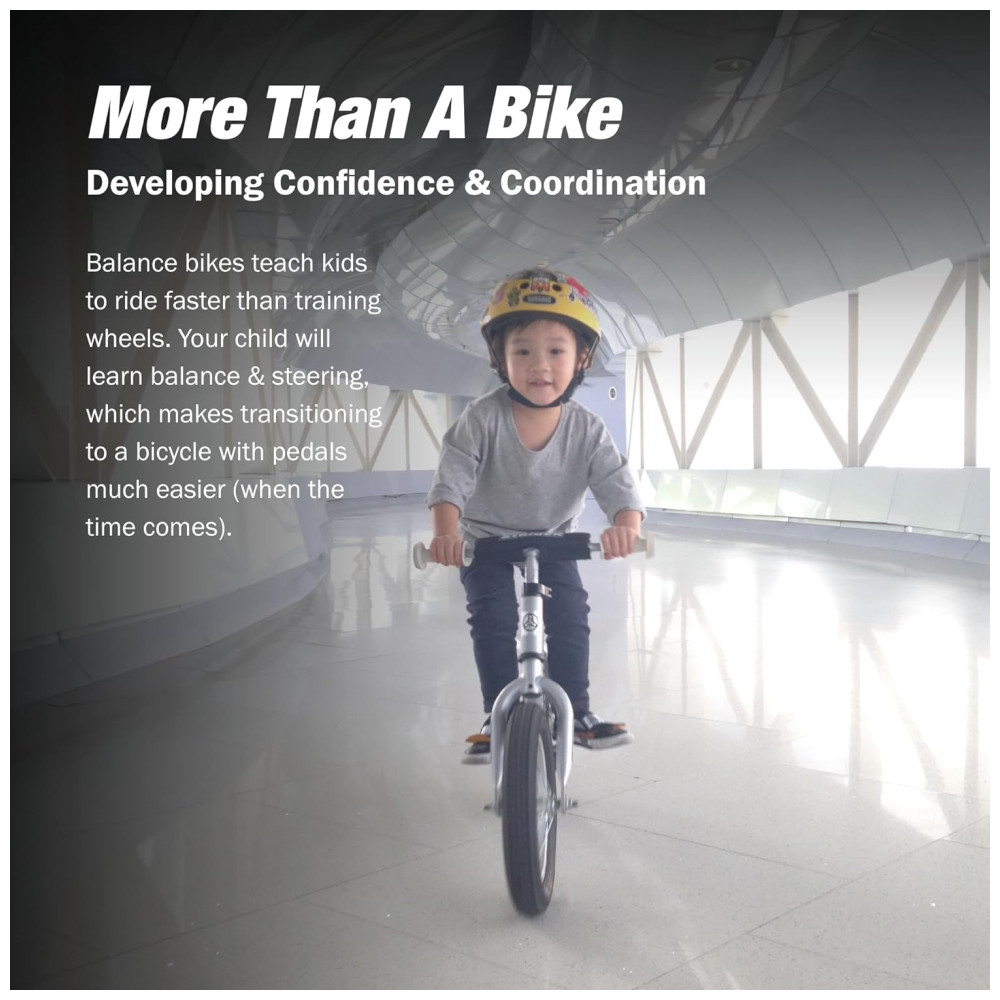 Aprenda a andar mais rápido As bicicletas de equilíbrio são comprovadas repetidamente para ensinar meninos e meninas a andar mais rápido do que as rodinhas. Aprenda equilíbrio e direção, para fazer a transição para uma bicicleta muito mais fácil.