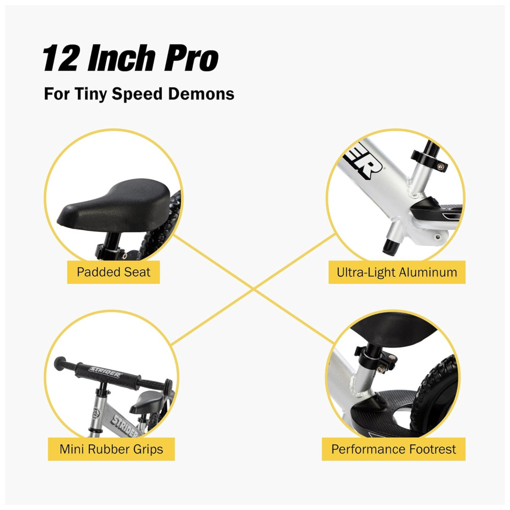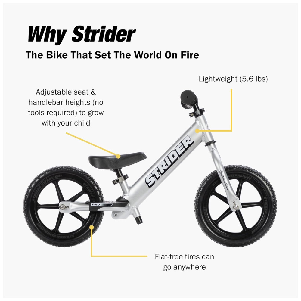 Bicicleta sem Pedal Leve para Crianças de 2 a 5 Anos Strider 12 Pro Prata
