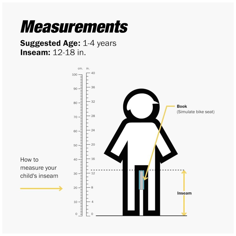 Elevação mais baixa do assento a altura do assento de permite que seu filho monte na bicicleta desde tenra idade. As alturas do assento e do guidão são ajustadas para acomodar idades de 18 meses a 5 anos.